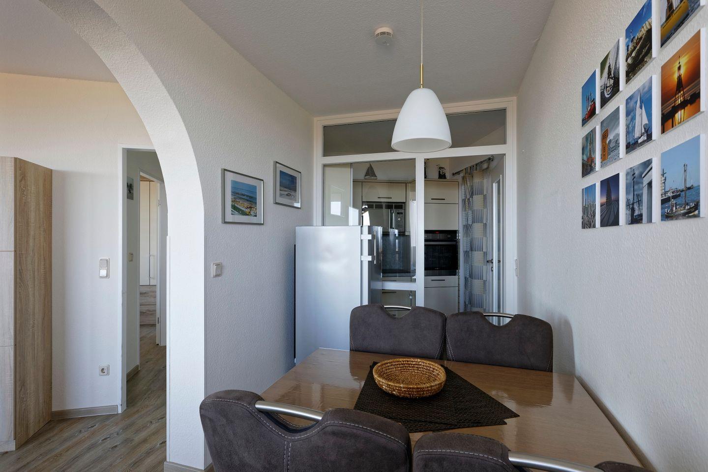 Viel Platz bietet die 66m² große 2-Zimmer Ferienwohnung für bis zu vier Personen. Ein Farbkonzept aus warmen Farbtönen und ein stimmiges Lichtkonzept schaffen Wohlfühlambiente pur. Hier erwartet Sie neben einer hochwertigen Ausstattung Erholung und Entspannung in Ihrem Urlaub in Cuxhaven. Neben der harmonischen Einrichtung punktet die FeWo in Cuxhaven-Döse vor allem durch eine Top-Lage an der Nordsee. Den nahegelegenen Strand erreichen Sie in wenigen Minuten. Wenn sich das Wetter von der schlechten Seite zeigt, können Sie von der kostenlosen Nutzung des hauseigenen Schwimmbads profitieren.