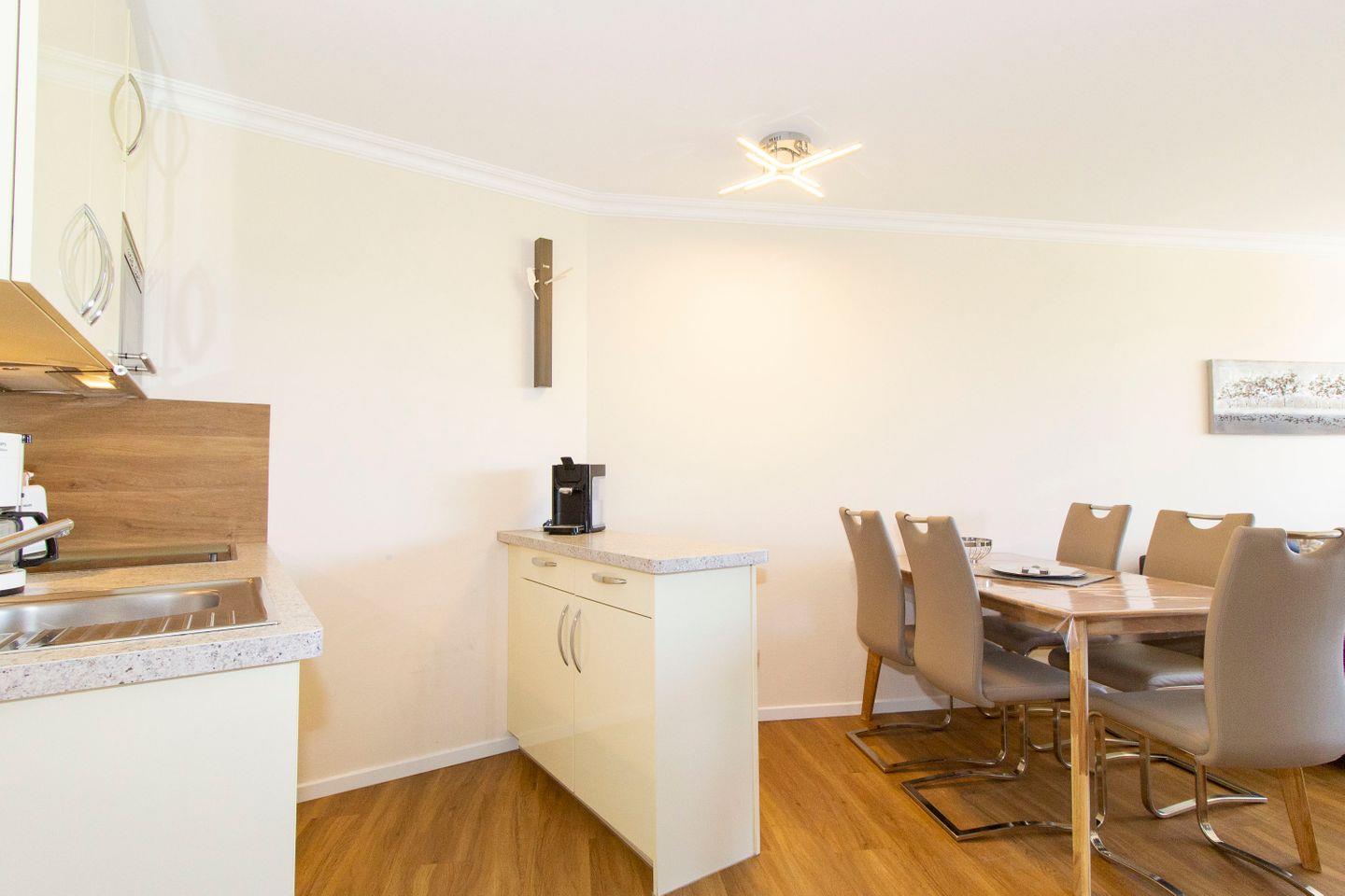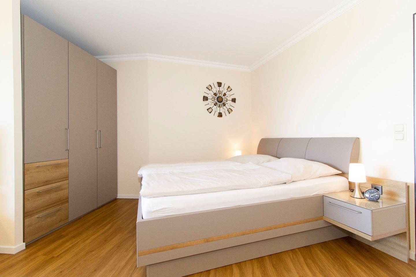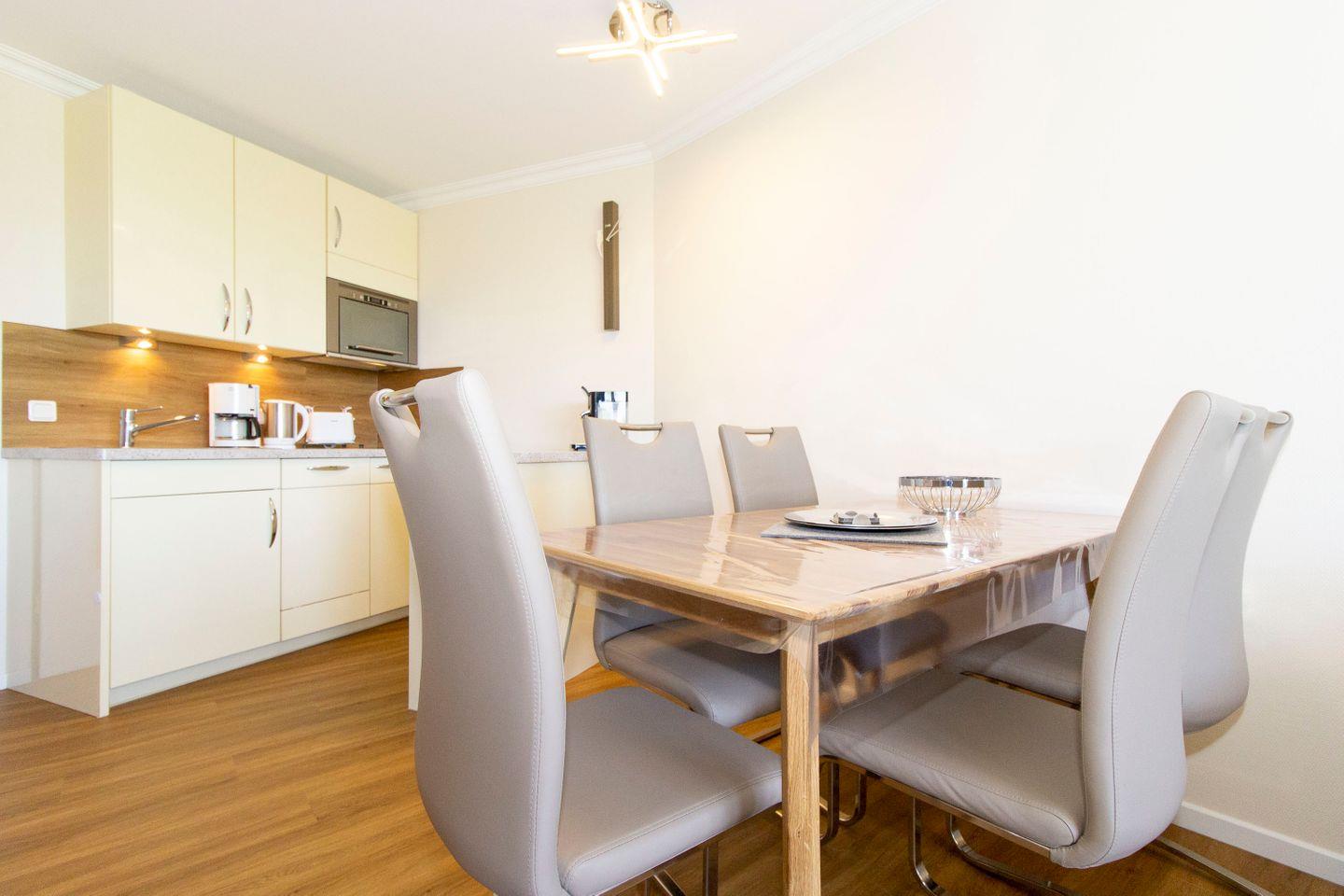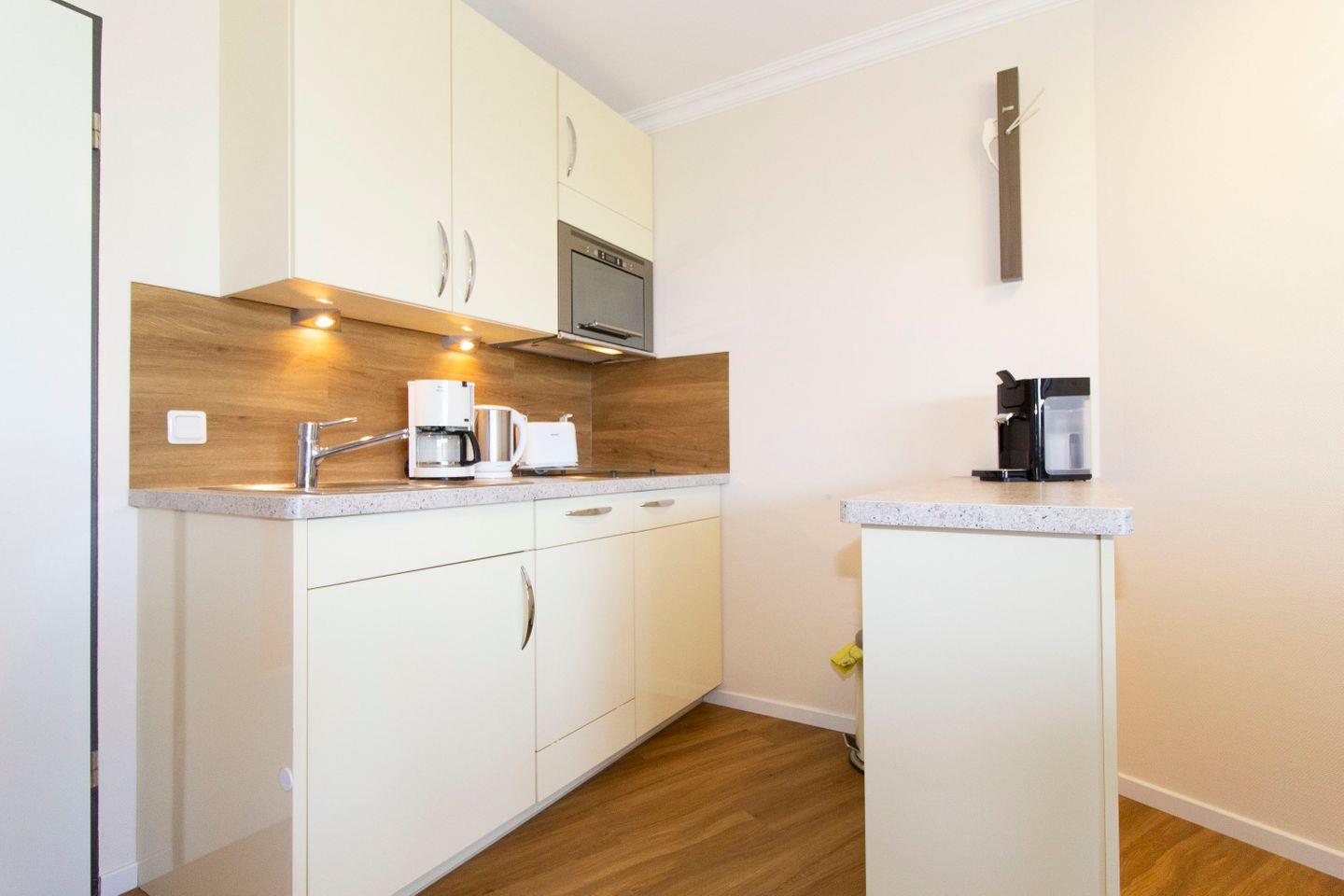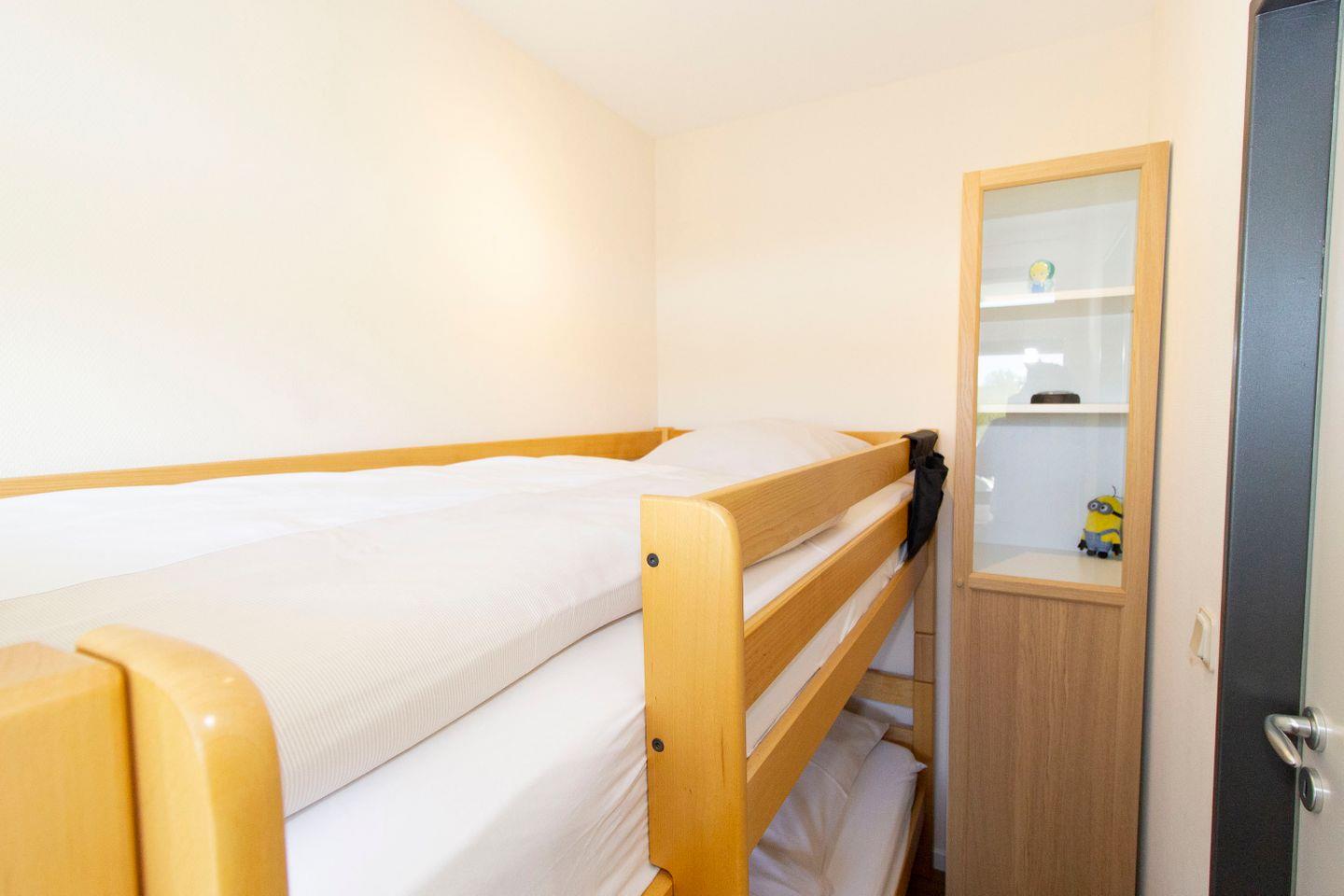 Haus "Lord Nelson", Typ 2, App.-Nr. "104", bis 4 Personen, 1. Etage, Westseite (ohne Seesicht/Richtung Neuwerk), Wohnbereich mit Boxspringbett, separates kleines Zimmer mit Etagenbett, Dusche/WC, Küchenzeile mit Geschirrspüler und Mikrowelle, ca. 40 qm Wohnungsgröße, Balkon, Kabel-TV (Netflix nutzbar mit eigenen Zugangsdaten), Radio mit Bluetooth-Funktion, Blue-Ray-Player, W-Lan inkl., Außenstellplatz, Strandkorb im Sommer 2025