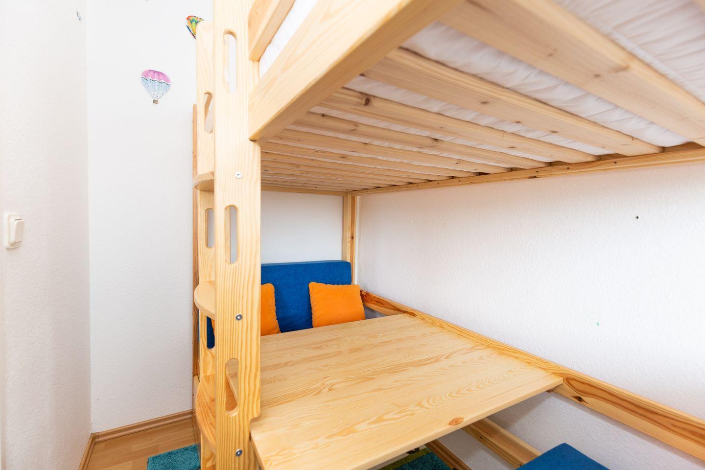 Die Wohnung stellt keinen Strandkorb zur Verfügung. Das Hochbett ist nur für Kinder geeignet.