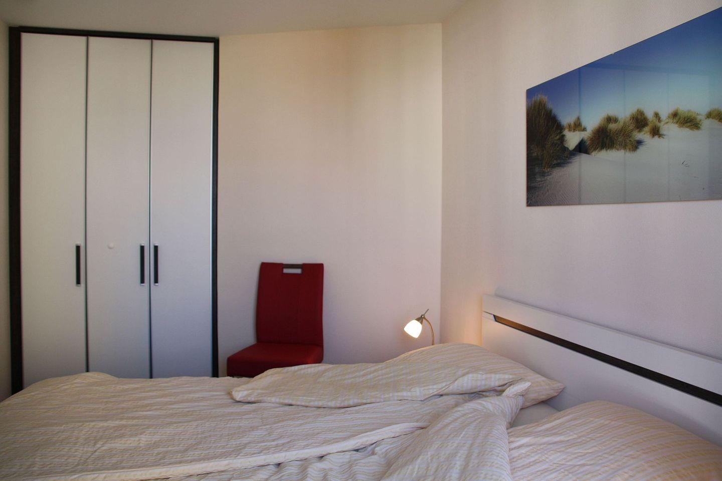 Haus "Lord Nelson", App. 513, Typ 6, bis 6 Personen, 5. Etage, ca. 66 qm, Ostseite, seitlicher Meerblick Richtung Weltschifffahrtsweg, Schlafzimmer mit Doppelbett und Fernseher, 2. Schlafzimmer mit zwei Einzelbetten (innenliegend), Wohnbereich mit Schlafcouch, Dusche/WC, separates WC, separate Küche mit Geschirrspüler, Backofen und Mikrowelle, Balkon, Kabel-TV, kostenl. W-Lan Zugang im App., Nichtraucher, Tiefgaragenstellplatz, Strandkorb im Sommer 2026.