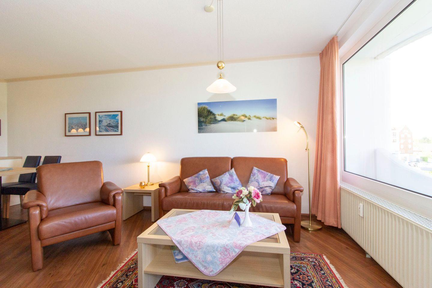 Haus "Lord Nelson", Typ 2, App.-Nr. "203", bis 4 Personen, 2. Etage, Westseite (ohne Meerblick/Richtung Neuwerk), Wohnbereich mit in den Schrank integrierten Boxspringbett (2 Einzelne Matratzen 90x200), separates kleines Kinderzimmer mit Einzelbett und klappbaren Schiffskojenbett, Dusche/WC, Küchenzeile mit Mikrowelle und Geschirrspüler, ca. 40 qm Wohnungsgröße, Balkon, Kabel-TV, Tiefgaragenstellplatz, Nichtraucherappartement, Haustiere sind nicht gestattet, kein WLAN, Strandkorb im Sommer 2025.
