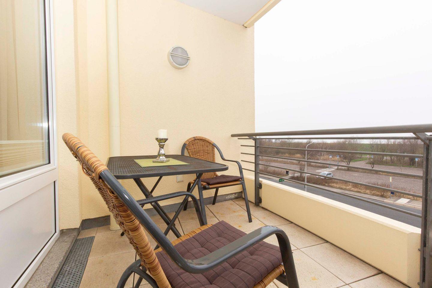 Die Loggia entzückt mit Blick auf Nordsee und Elbmündung. Hier können sich unsere Urlaubsgäste zurücklehnen und die passierenden Schiffe beobachten.
