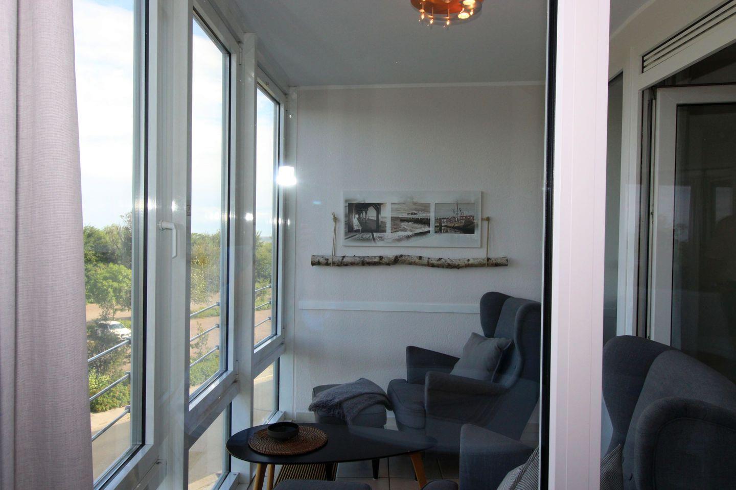 Haus "Kurpark-Residenz", Typ C, Appartement-Nr. "216", bis 4 Personen, 2. OG, Nordseite (Seesicht Richtung "Elbe"), ca. 52 m² Wohnungsgröße, Wohnzimmer mit Schlafcouch, separates Schlafzimmer mit Doppelbett (innenliegend), Dusche/WC, Küchenzeile mit Mikrowelle, Backofen und Geschirrspüler, Wintergarten, SAT-TV, WLAN, Tiefgaragenstellplatz, Nichtraucher, Strandkorb im Sommer 2026.
