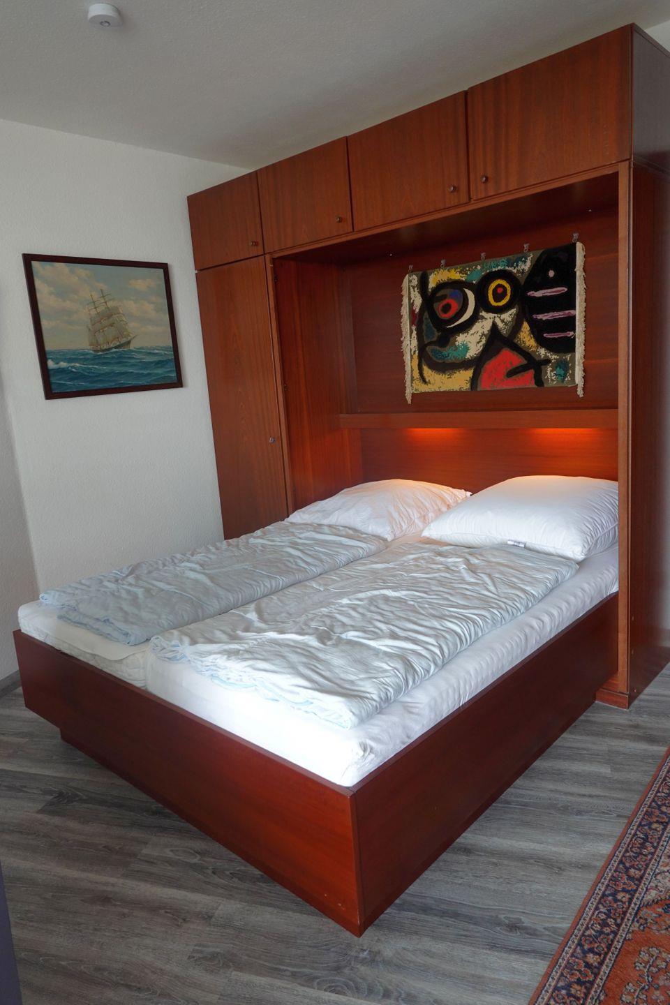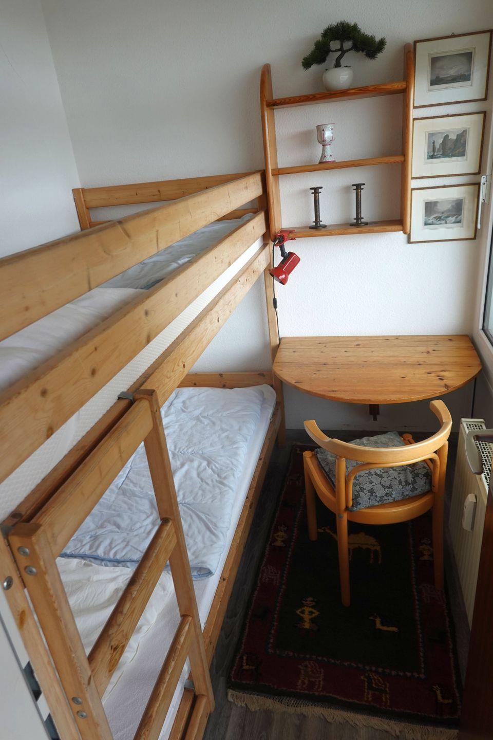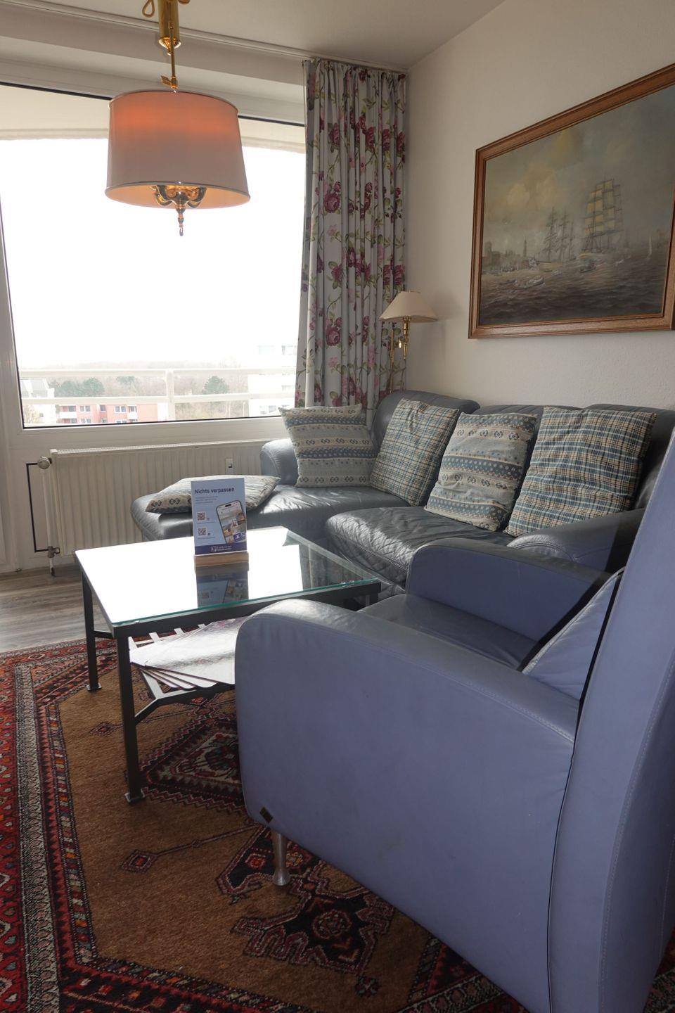 Haus "Lord Nelson", Typ 2, App.-Nr. "716", bis 4 Pers., 7.te Etage, ca. 40 qm Größe, Weltschifffahrtsweg (seitlicher Meerblick Richtung Elbe), Wohnbereich mit Doppelbett, separates kleines Kinderzimmer mit Etagenbett, Dusche/WC, Küchenzeile mit Mikrowelle, Geschirrspüler, Telefon, Kabel-TV, Balkon, Tiefgaragenstellplatz, kein WLAN