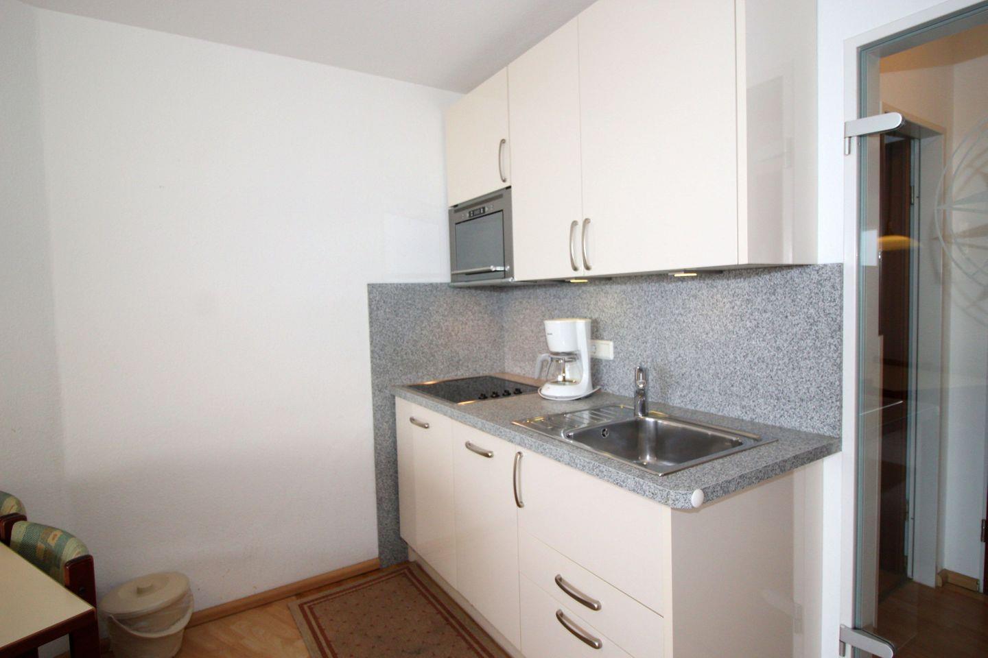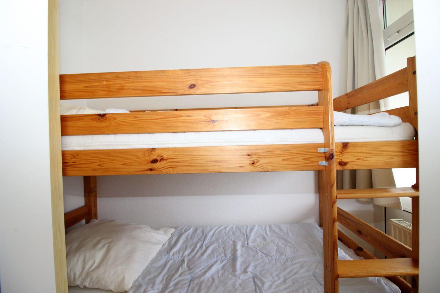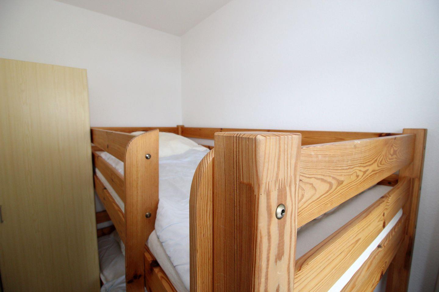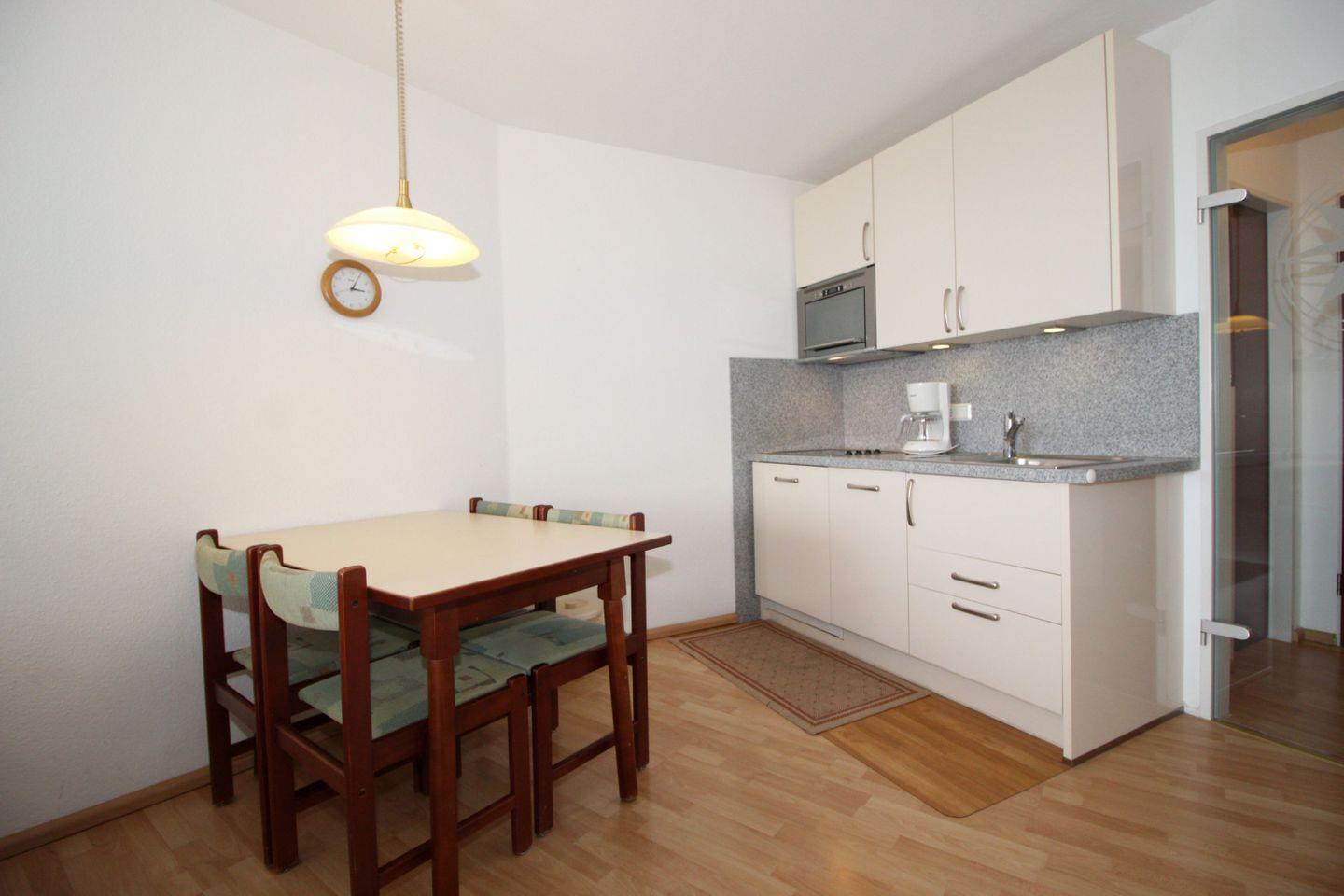 Haus "Lord Nelson", Typ 2, Appartement-Nr. "817", bis 4 Personen, 8. Etage, ca. 40 qm Wohnungsgröße, Weltschifffahrtsweg (seitlicher Meerblick Richtung Elbe), Wohnbereich mit Schrankbett, separates kleines Kinderzimmer mit Etagenbett, Dusche/WC, Küchenzeile mit Geschirrspüler und Mikrowelle/4 Platten-Ceranfeld, Telefon, Kabel-TV, Nichtraucher App., Balkon, Tiefgaragenstellplatz, Strandkorb im Sommer 2026, kostenloser WLAN-Zugang.