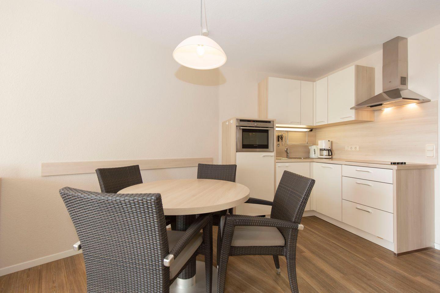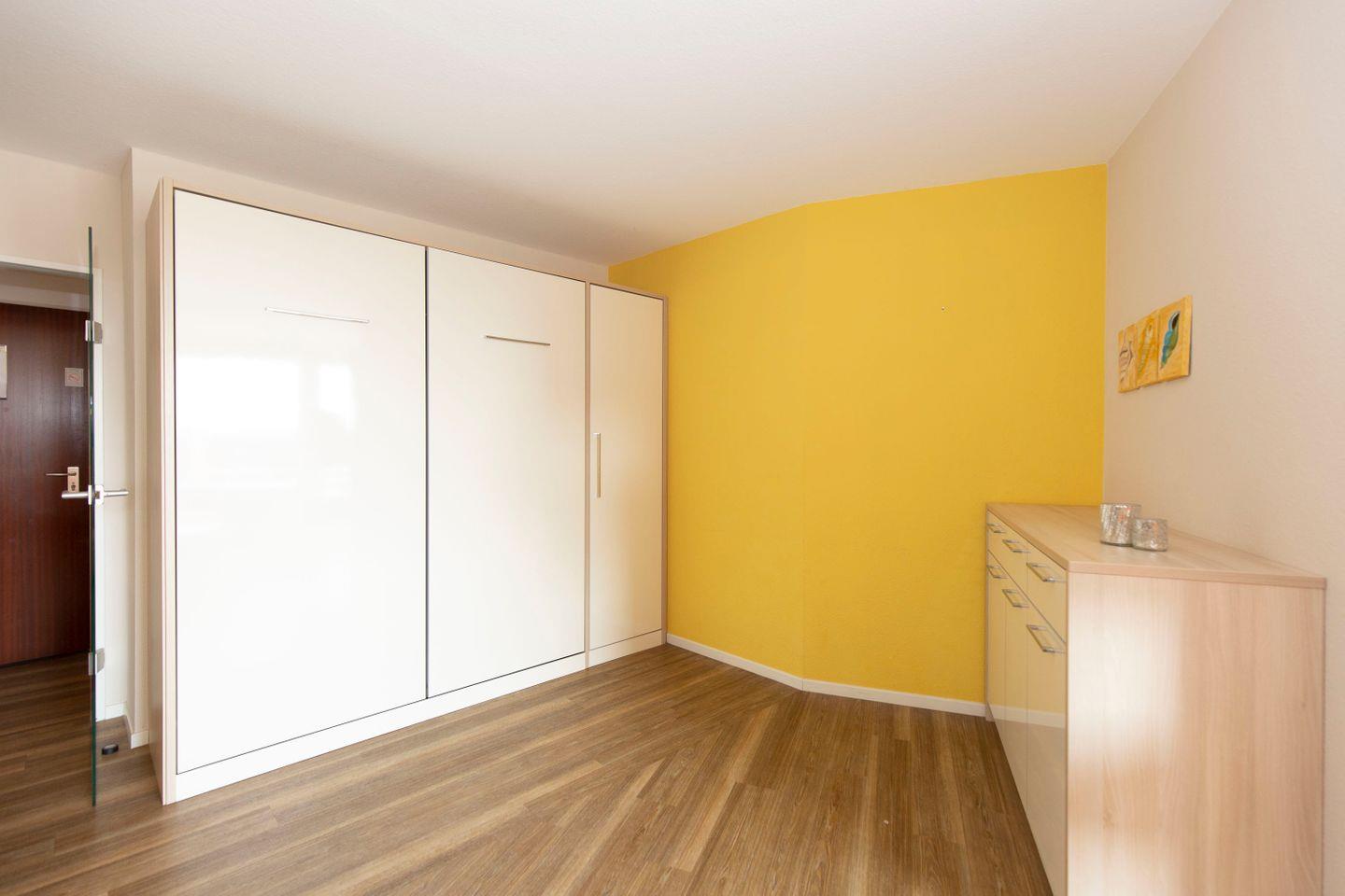 Haus "Lord Nelson", Typ 2, App.-Nr. 419, bis 4 Pers., ca. 40 qm, Weltschifffahrtsweg, seitlicher Meerblick Richtung Elbe, Wohnbereich mit Schrankbett (einzeln klappbar), Kinderzimmer mit Etagenbett, Dusche/WC, Küchenzeile mit 4-Platten-Ceranfeld, Geschirrspüler, Mikrowelle, Backofen, Balkon, Flatscreen-TV (schwenkbar zum Bett), Blu-Ray-Player, Stereo Musiksystem mit Bluetooth, CD, USB DAB+ und Radio, kostenl. W-Lan Zugang im App., Nichtraucherwohnung, Haustiere sind nicht erlaubt, Tiefgaragenstellplatz, Strandkorb im Sommer 2026.