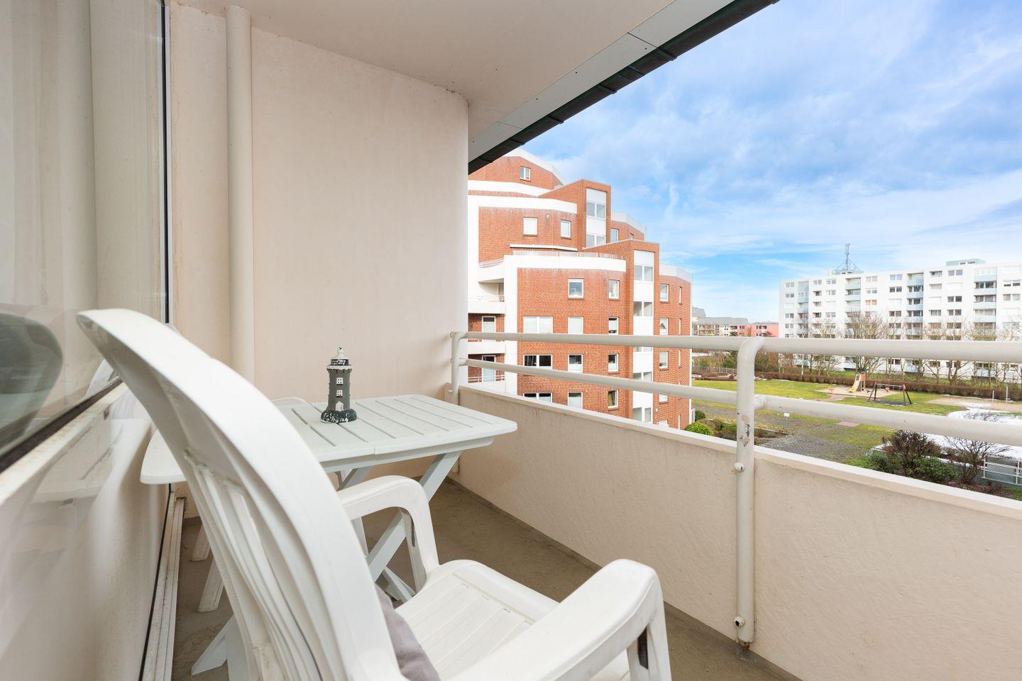 Auf dem großzügigen Balkon können unsere Gäste jederzeit die frische Nordseeluft genießen. Der perfekte Ort, um einen Urlaubstag in Ruhe Revue passieren zu lassen.