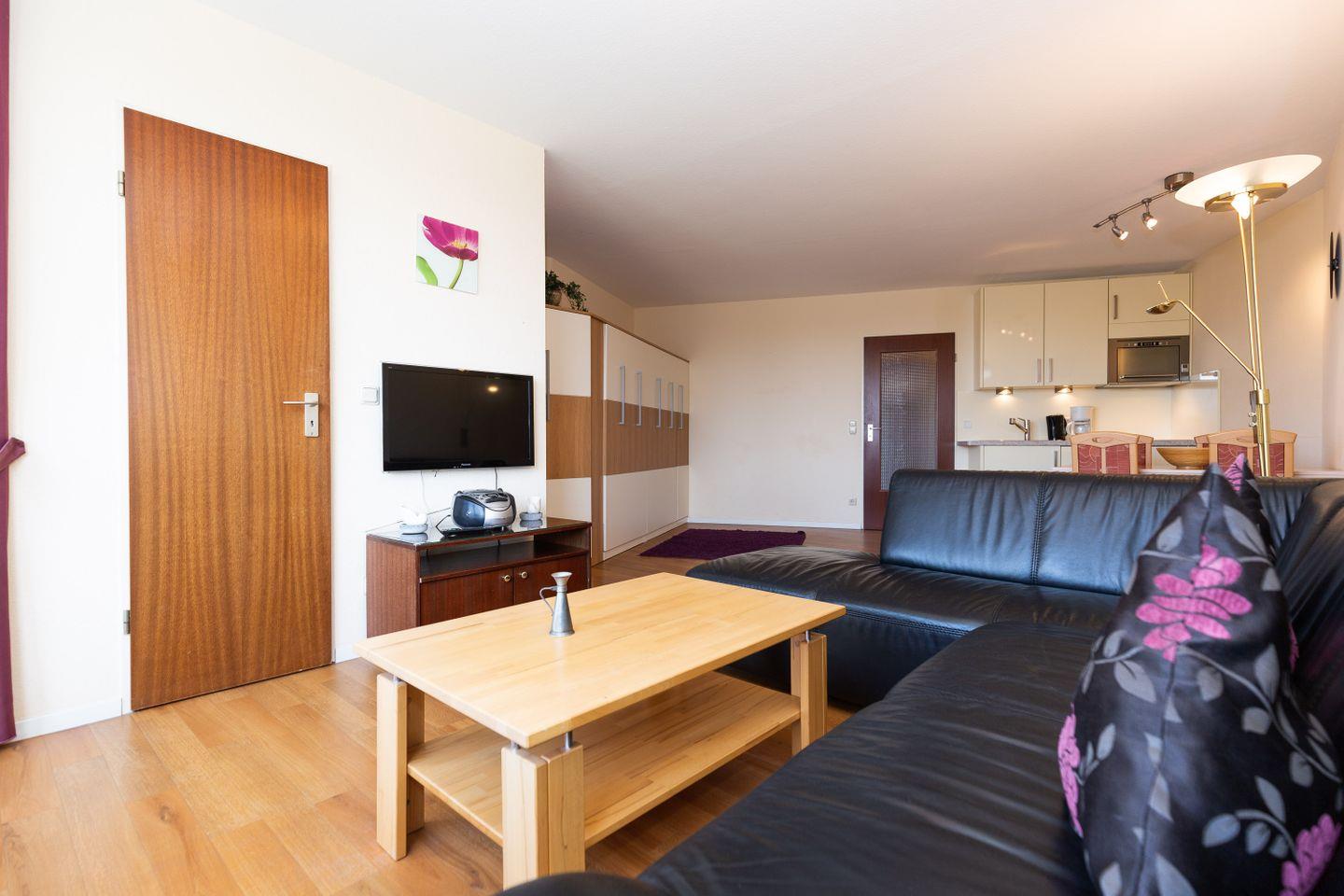 Haus Lord Nelson, Typ 2, App.-Nr. 105, bis 4 Personen, 1. Etage, ca. 40 qm, Weltnaturerbe Wattenmeer (ohne Meerblick/Richtung Neuwerk), Wohnbereich mit Schrankbett, sep. kleines Kinderzimmer mit Etagenbett, Dusche/WC, Küchenzeile mit 4-Platten-Ceranfeld, Geschirrspüler und Mikrowelle, Balkon, Telefon, Kabel-TV, kostenl. WLAN Zugang im App., Tiefgaragenstellplatz, Nichtraucherwohnung