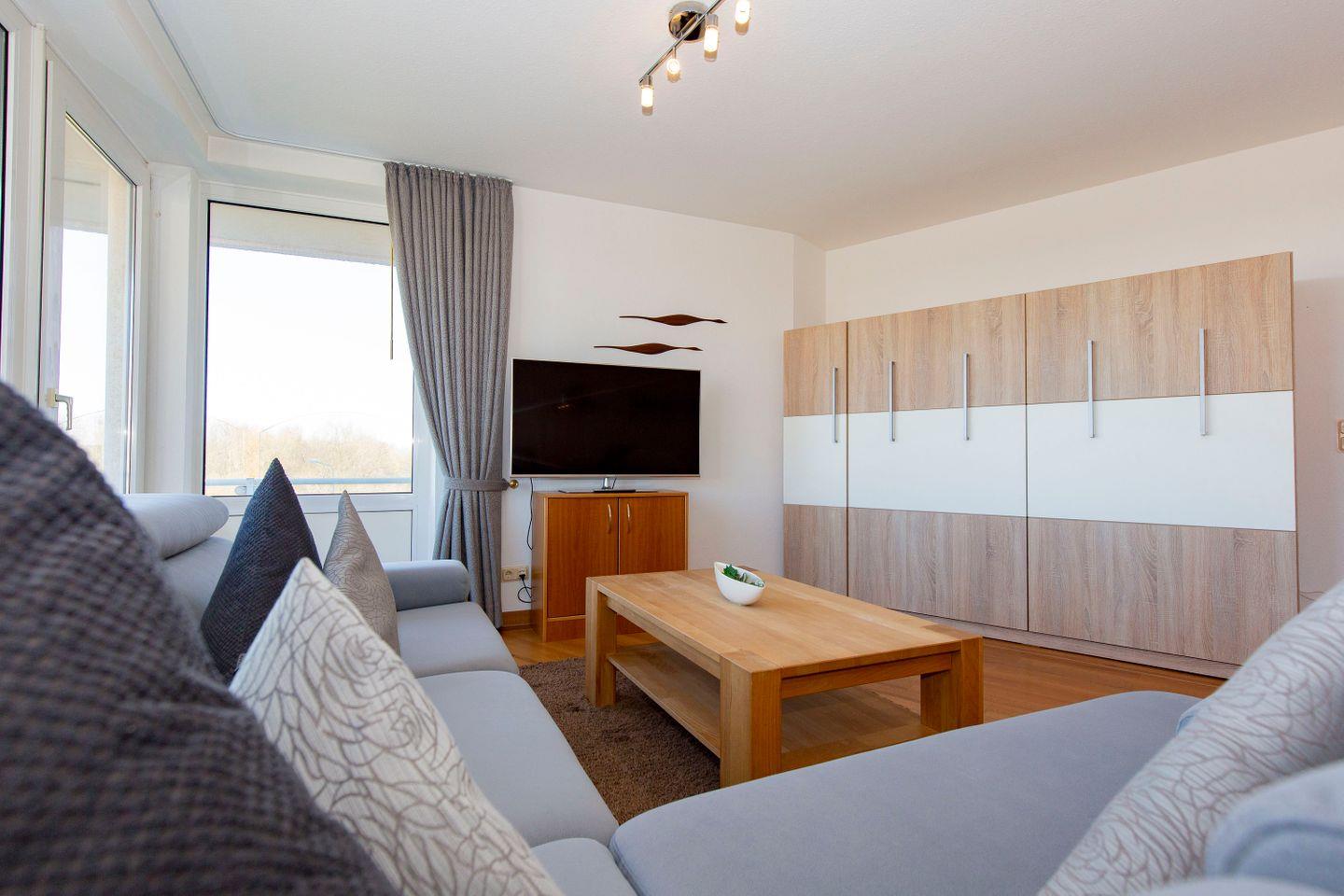 Auf 66 m² finden in dieser 2-Zimmer-Ferienwohnung (Hundefreundlich) bis zu vier Personen Platz. Eine schlichte, edle Einrichtung prägt das Bild: Gepaart mit den großen Räumlichkeiten wird so eine ruhige Atmosphäre kreiert, die zu Entspannung und Erholung einlädt. Die FeWo punktet mit einem Balkon mit seitlichem Meerblick und strandnaher Lage.