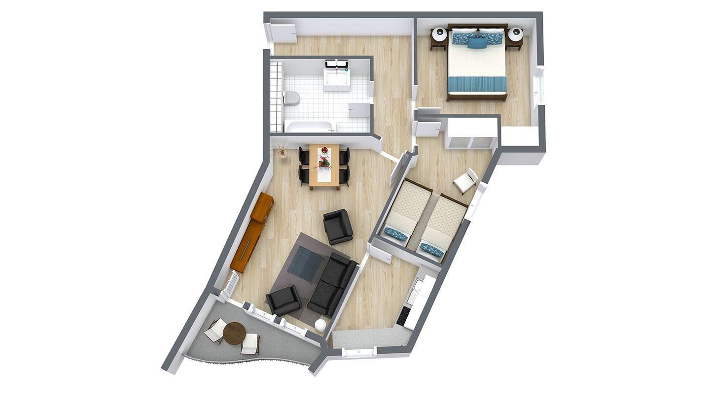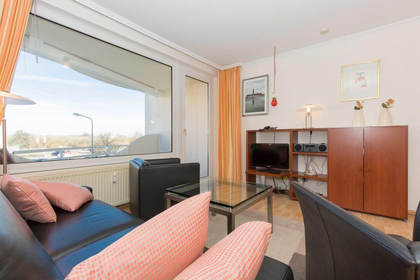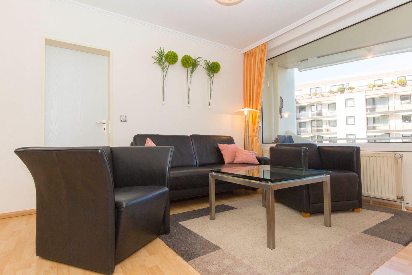 Haus "Trafalgar", Typ D, Appartement-Nr. 127, bis 4 Pers., 1.Etage, ca. 66 qm, Westseite (ohne Meerblick), Schlafzimmer mit Doppelbett, Schlafzimmer mit zwei Einzelbetten, separate Küche mit Backofen, Mikrowelle und Geschirrspüler, Dusche/WC, Balkon, Kabel-TV, Telefon, kostenl. WLAN-Zugang im App., Tiefgaragenstellplatz, Haustiere sind nicht gestattet, Nichtraucherwohnung, Strandkorb im Sommer 2025.