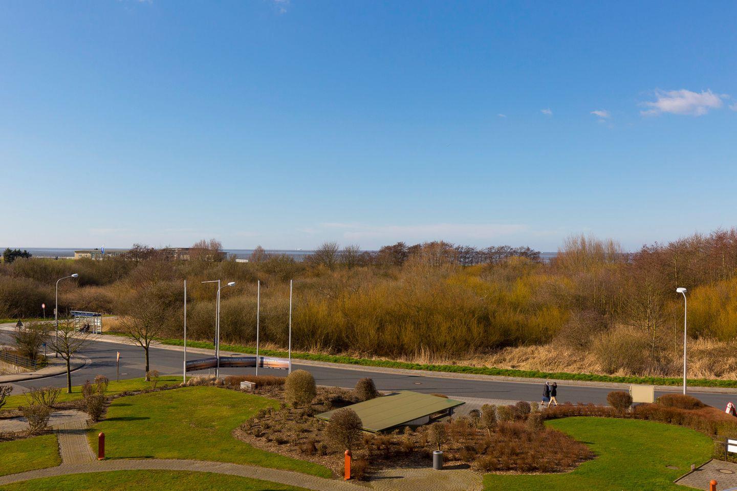 Der Balkon bietet Blick Richtung Deich/Neuwerk. Hier können Sie schon am Morgen beim Frühstück die salzige Meeresluft genießen.