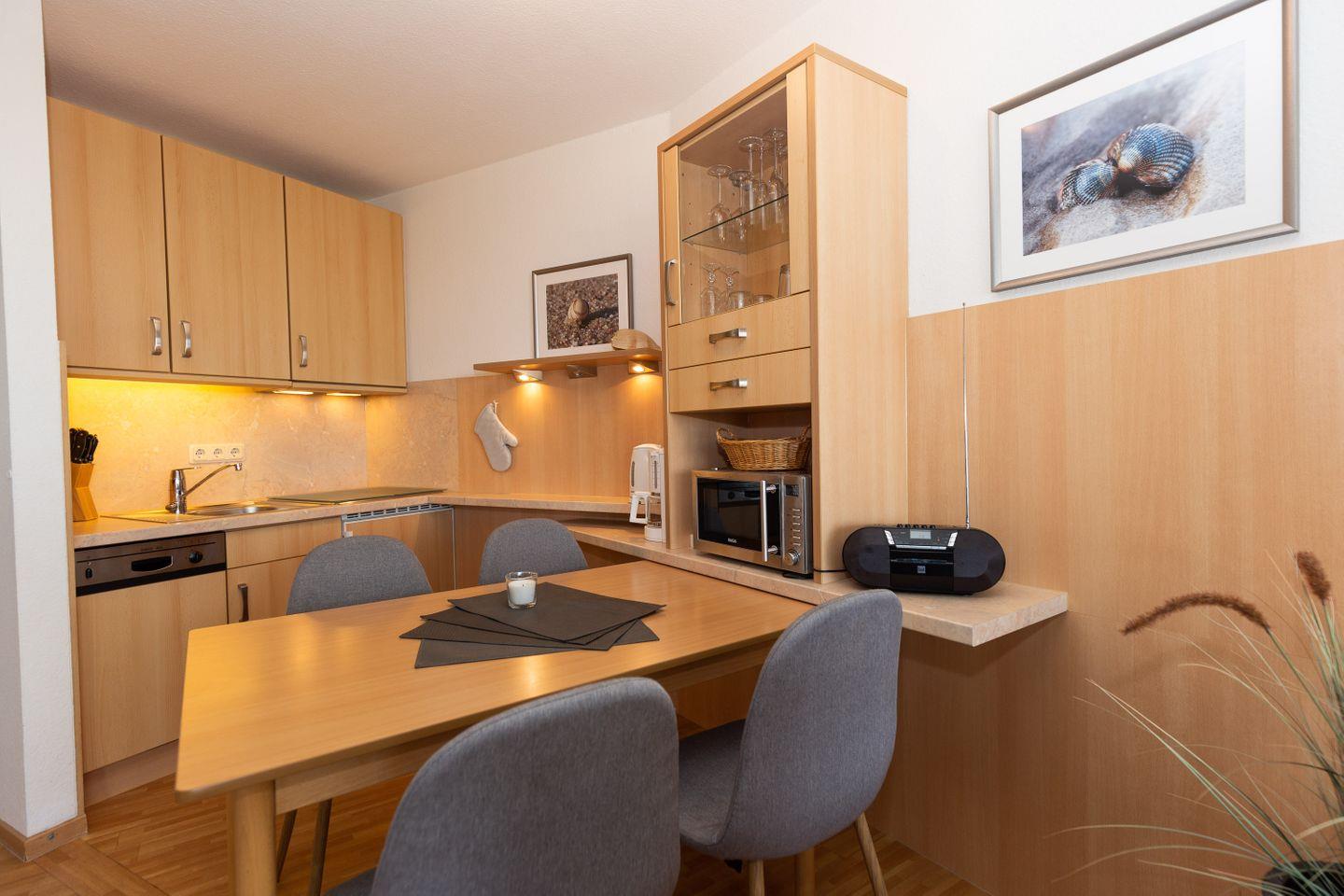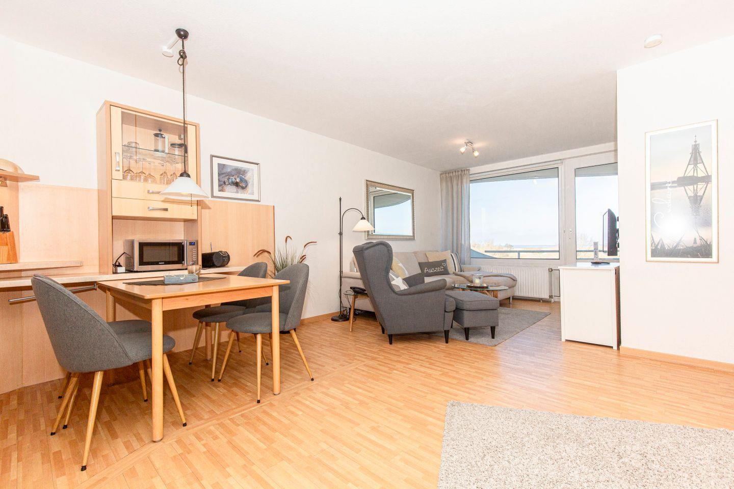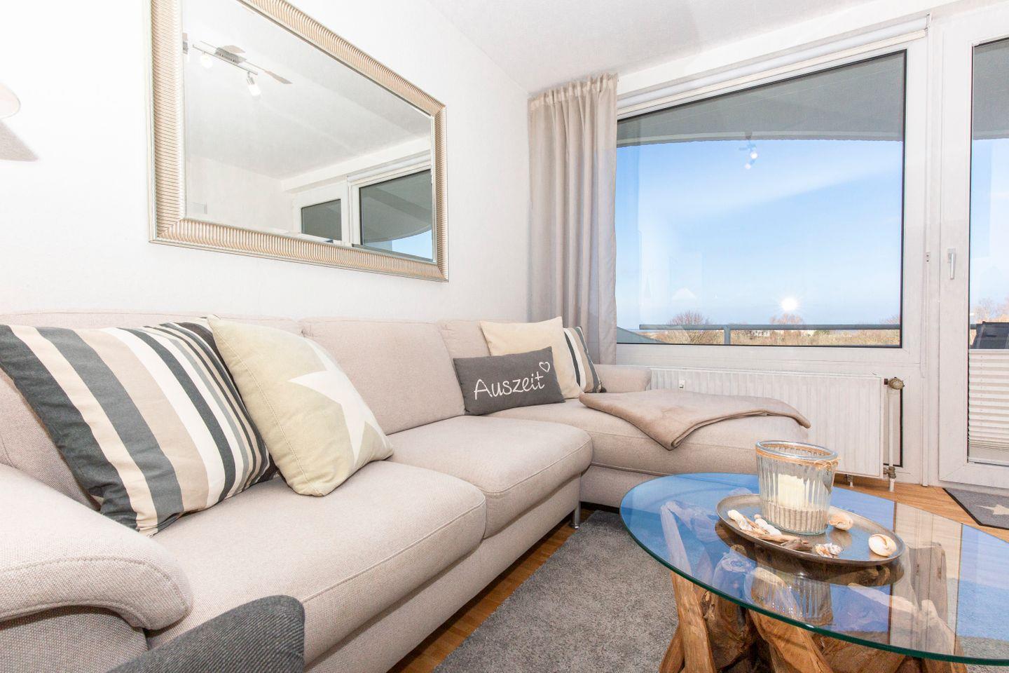 Die liebevoll eingerichtete Ferienwohnung für 4 Personen (hundefreundlich) garantiert einen entspannten Urlaub in Cuxhaven – für kleine Familien und Paare. Eine gemütliche Sofalandschaft in einem hellen Grauton bildet optisch das Zentrum der FeWo an der Nordsee. Auf dem Balkon können Sie bei einem Glas Wein die unvergesslichen Sonnenuntergänge genießen. Spontane Ausflüge ans Wasser lassen sich durch die strandnahe Lage einfach in die Tat umsetzen. Nachdem Sie das Reizklima an der Nordsee ausgekostet haben, können Sie sich im hauseigenen Schwimmbad entspannen und aufwärmen.