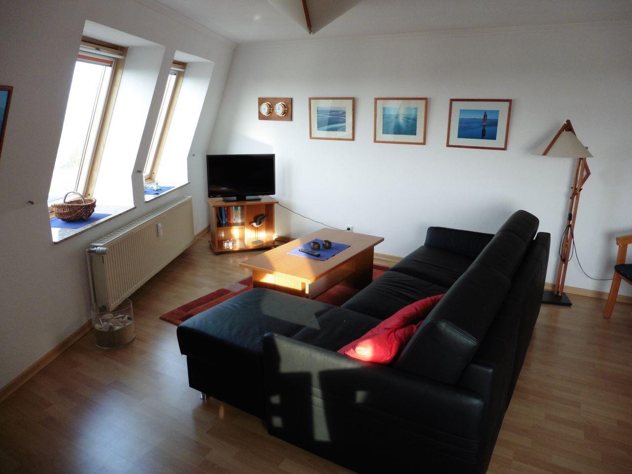 Haus "Trafalgar", Typ B, App.-Nr. 527, 5. Etage, ((Aufzug bis zur 4. Etage, links den Gang bis zum Ende - Tür 427 öffnen, dann Vorflur innen eigene Treppe rechts) bis 4 Pers., ca. 50 qm, Westseite (Meerblick), ohne Balkon, Wohn- Schlafraum mit Schlafcouch, sep. Schlafzimmer mit Doppelbett, Küchenzeile mit Ceranfeld, Geschirrspüler & Mikrowelle, Bad mit Dusche/WC, Kabel-TV, W-Lan im App, Haustiere sind nicht gestattet, Nichtraucher-Appartement, Tiefgaragenstellplatz, Strandkorb im Sommer 2026.