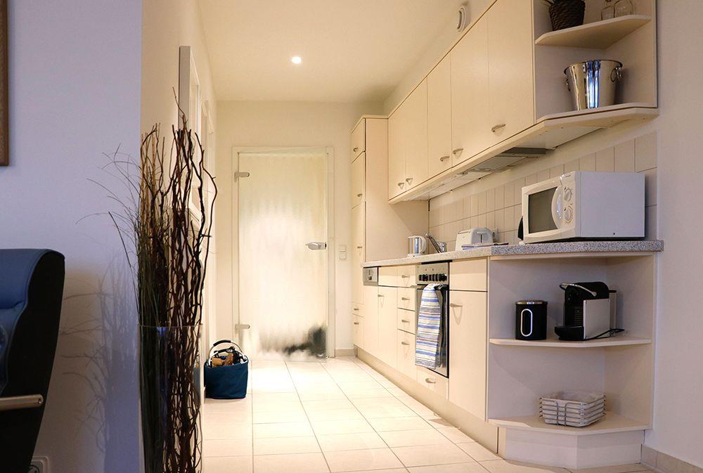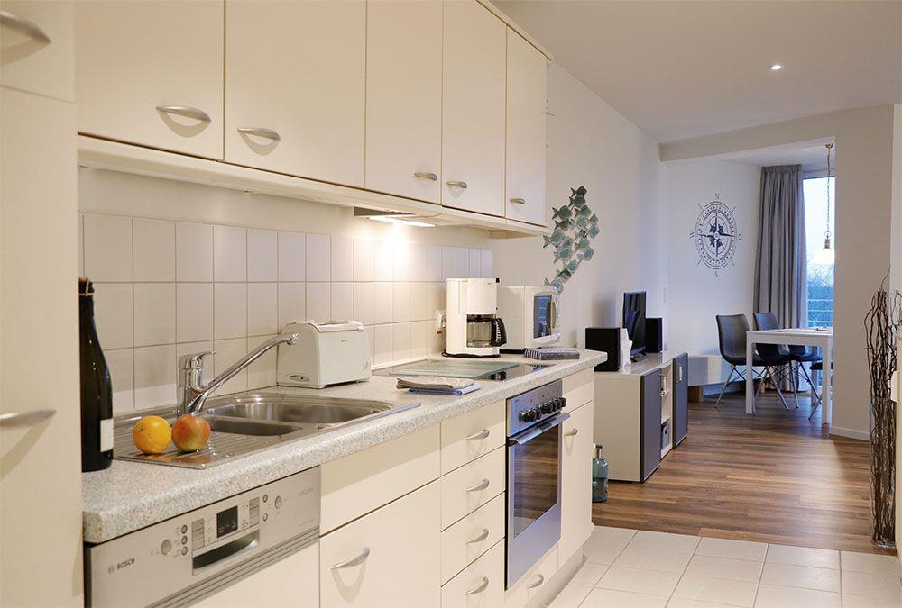 Haus "Kurpark-Residenz", Typ C, Appartement-Nr. "114", 1. OG, Nordseite , ca. 55 m² Größe für max. 4 Personen, Wohnzimmer mit Schlafsofa, SAT-Fernseher und Stereoanlage, kostenl. W-Lan Zugang im App., separates Schlafzimmer mit Doppelbett (innenliegend), Dusche/WC, großzügig ausgestattete Küchenzeile mit Mikrowelle, Backofen und Geschirrspüler, Sonnenterrasse in der 1. Etage nutzbar, Tiefgaragenstellplatz, Nichtraucher, Haustiere sind nicht gestattet, Strandkorb im Sommer 2026.