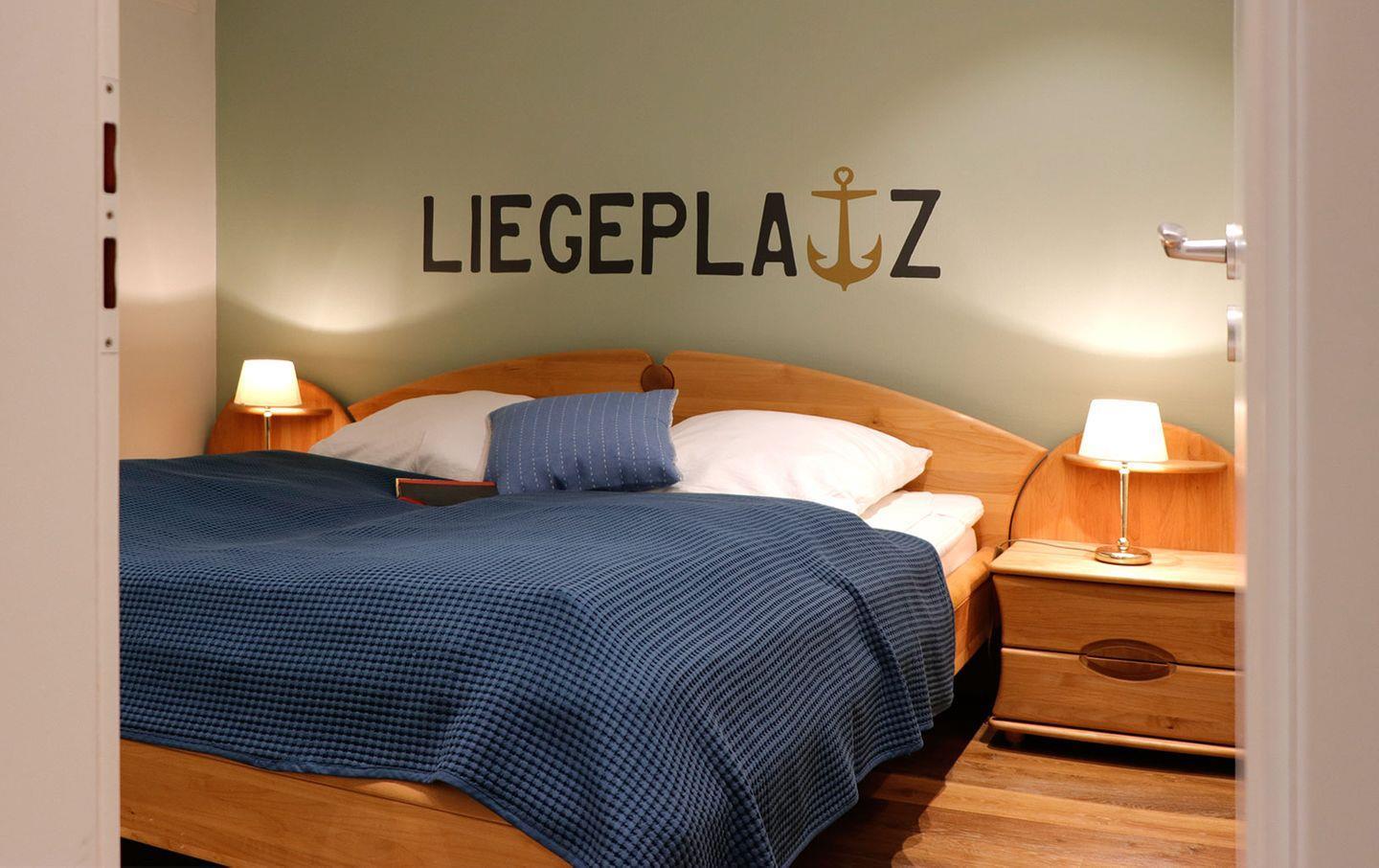 Lichtdurchflutetes Appartement im maritimen Stil mit Schlafsofa Multy im Wohnbereich, dessen große Fensterfront direkt auf den Deich gerichtet ist. Das separate, gemütliche Schlafzimmer bietet weiteren zwei Personen eine Schlafgelegenheit.