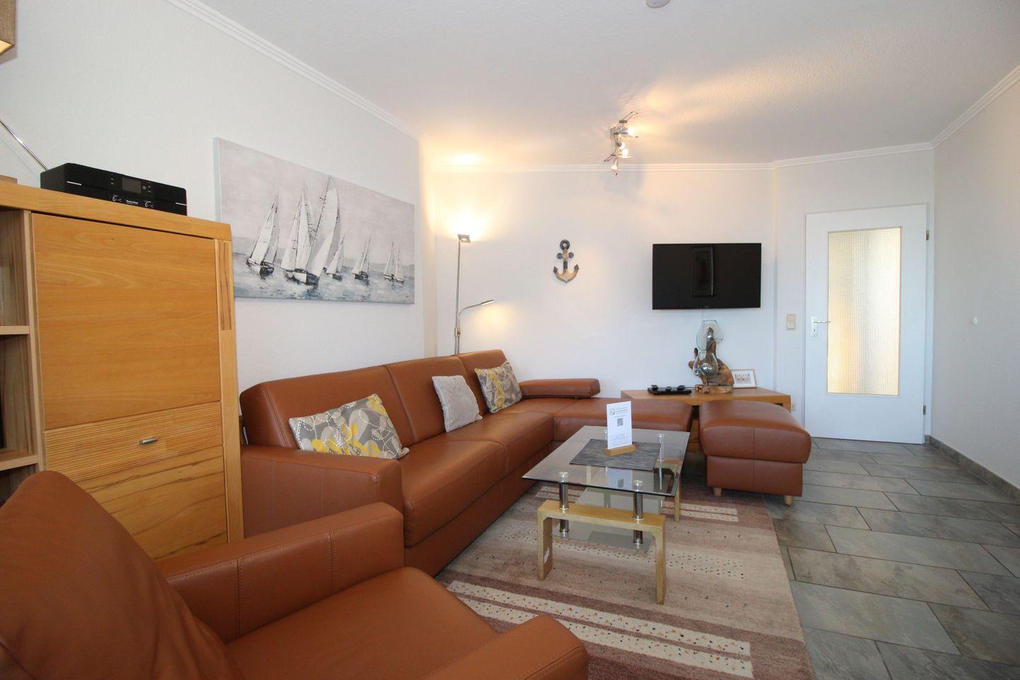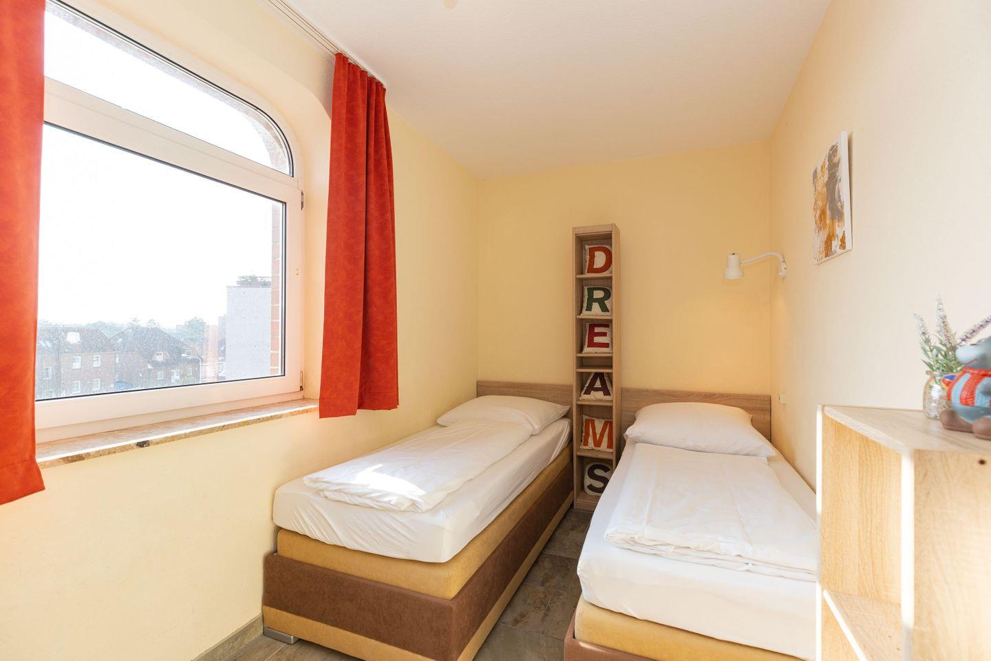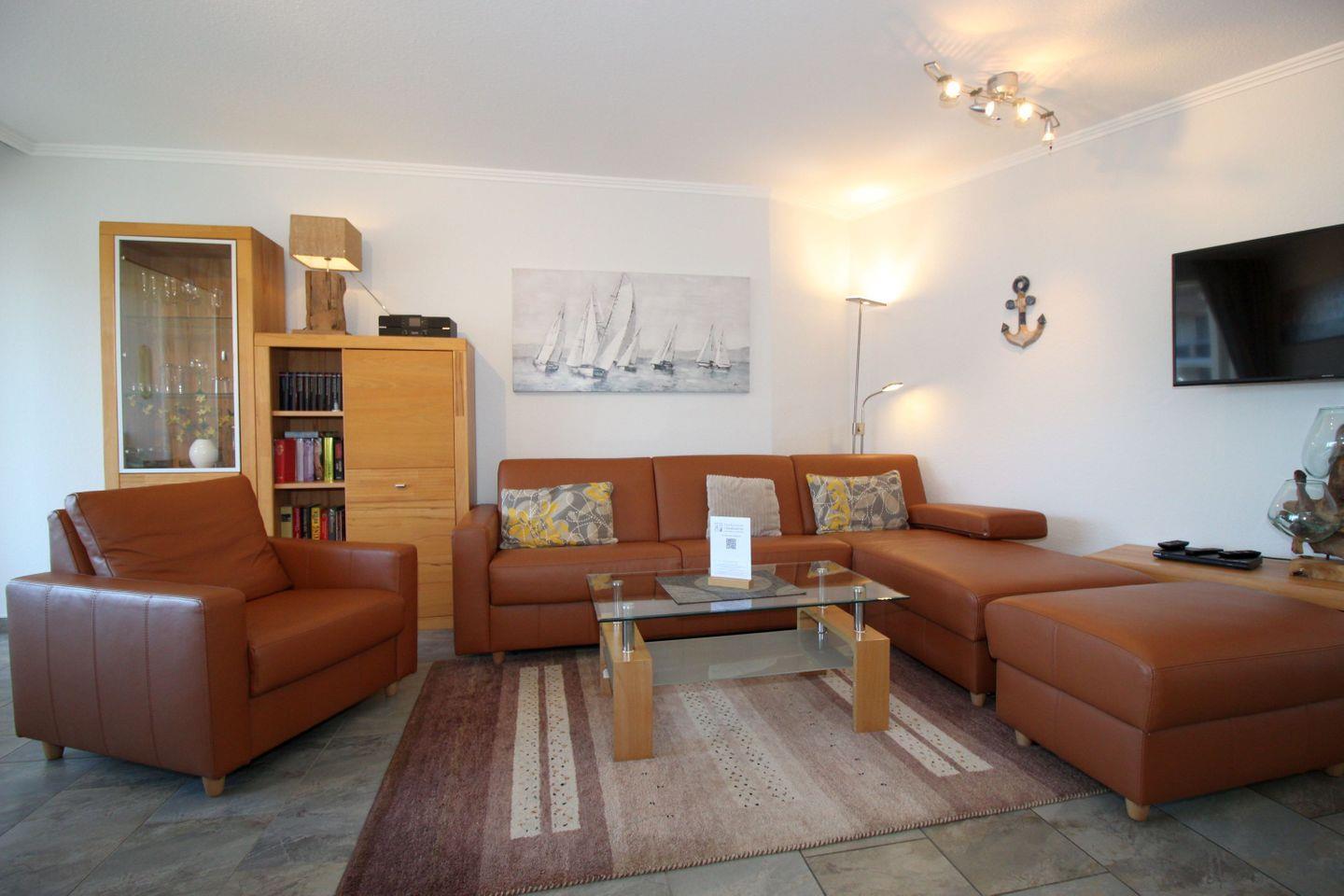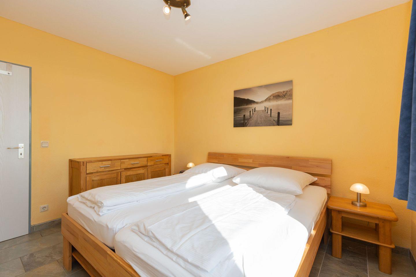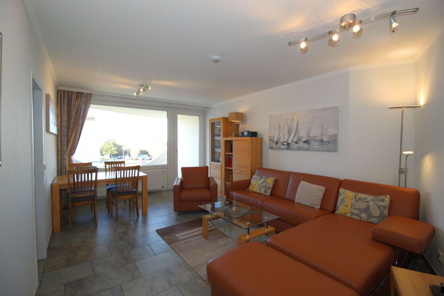 Haus "Trafalgar", Typ D, App.-Nr. 227, bis 4 Pers., ca. 66 qm, Westseite, Wohnbereich, Schlafzimmer mit Doppelbett, Schlafzimmer mit zwei Einzelbetten, separate Küche mit Backofen, Geschirrspüler und Mikrowelle, 4-Plattenherd, Badezimmer mit Dusche/WC, Balkon, Kabel-TV, WLAN, Tiefgaragenstellplatz, Haustiere sind nicht gestattet, Nichtraucherappartement.