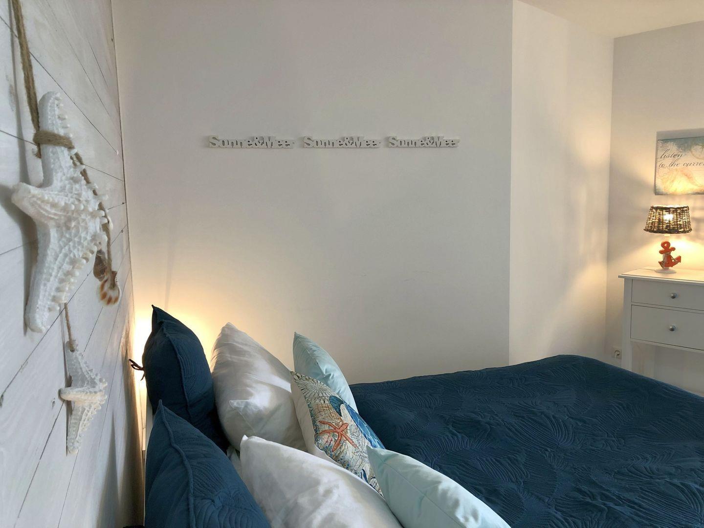 Haus "Lord Nelson", Typ 2, App.-Nr. 412, bis 4 Personen, ca 40 qm Größe, Weltschifffahrtsweg, seitlicher Meerblick Richtung Elbe, Wohnbereich mit Doppelbett, Kinderzimmer mit Etagenbett, Dusche/WC, Küchenzeile mit Geschirrspüler, Mikrowelle, 4-Platten-Ceranfeld, Balkon, kostenloses W-LAN im App., Kabel-TV, mobiler Bluetooth Speaker, Nichtraucherwohnung, keine Haustiere erlaubt, Strandkorb im Sommer 2026, Tiefgaragenstellplatz.