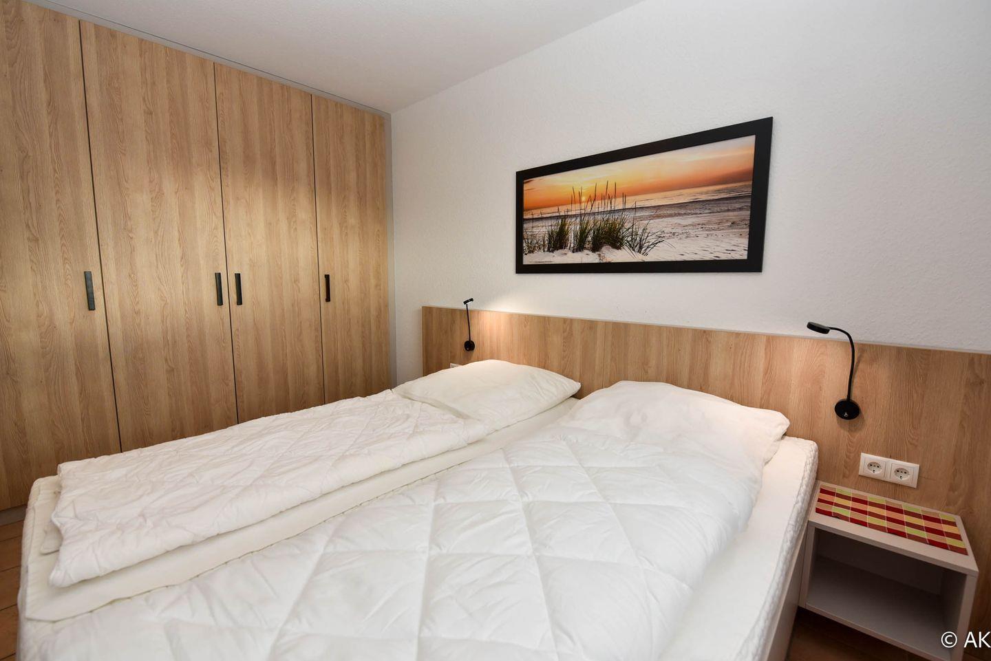 Die Wohnung Nr. 10 im 1. OG im Haus NAUTILUS verfügt über eine direkte Seesicht und ist aufgeteilt in ein Wohnzimmer mit Küchenzeile, Schlafzimmer mit Doppelbett und Bad mit Dusche und WC. Zur Ausstattung gehören u.a. Kühlschrank, E-Herd mit Cerankochfeld, Geschirrspüler, Kaffeemaschine, Wasserkocher, Toaster, Mikrowelle, Flachbildfernseher und Radio.