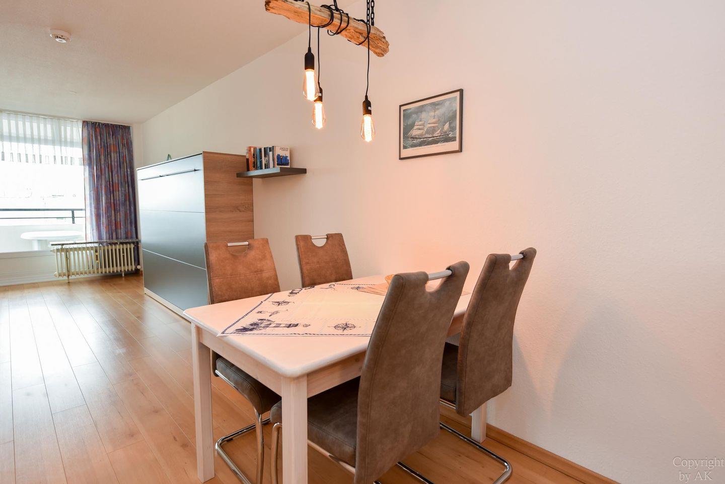 Die Wohnung Nr. 87 im Haus Panorama liegt in der 6. Etage und bietet einen beeindruckenden Seeblick in Richtung der Insel Neuwerk.