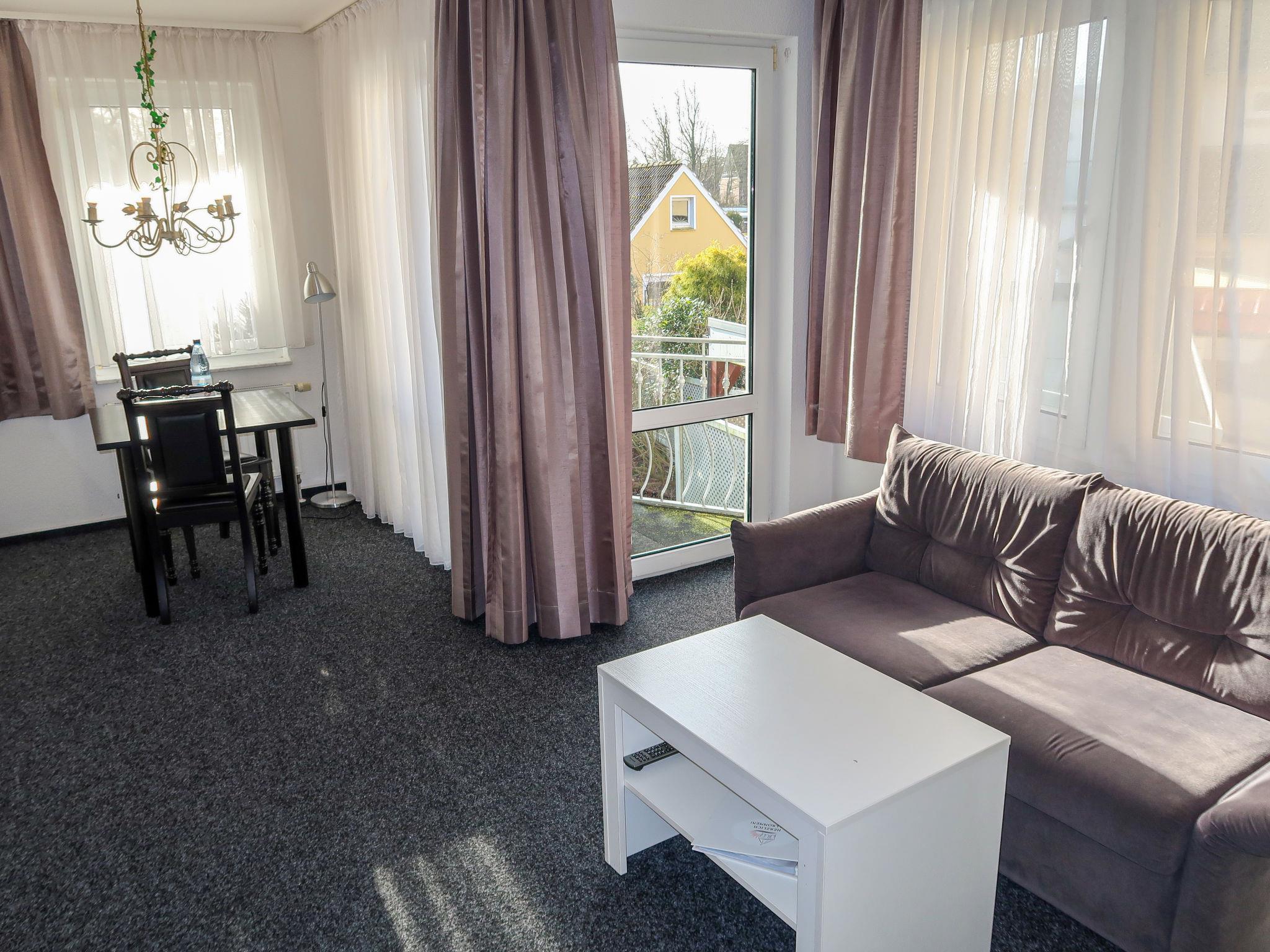 2-room apartment 35 m2. Cosy furnishings: living/sleeping room with 1 sofabed, dining table, satellite TV and radio. 1 room with 1 double bed. Kitchenette (2 hot plates, toaster, kettle, microwave, electric coffee machine). Shower/WC. Heating. Balcony or terrace. Balcony furniture. Facilities: children's high chair, baby cot. Internet (WiFi, free). Please note: non-smokers only. Maximum 1 pet/ dog allowed. Smoke alarm, fire extinguisher. The apartment is located on the ground or upper floor.