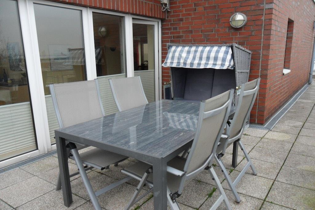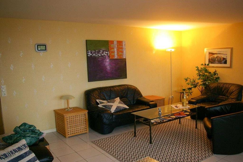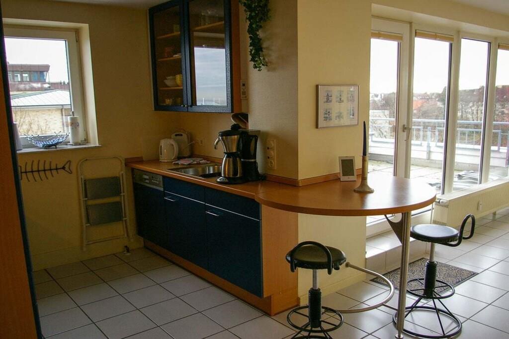 Du kan komme uhindret til ferielejligheden fra hovedindgangen ved hjælp af elevatoren. Fra den rummelige stue, der fungerer som "vinterhave", kommer man ind i stuen med to sofaer, hvoraf den ene også kan bruges som sovesofa. TV med dvd-afspiller, stereoanlæg, dvd'er, bøger og en spilsamling sørger for underholdning. Gratis Wi-Fi er selvfølgelig også tilgængelig. Soveværelset har direkte udgang til terrassen. Det separate køkken er fuldt udstyret med ovn og keramisk kogeplade, opvaskemaskine, køleskab med fryser, mikroovn og alle nødvendige redskaber. Det rummelige brusebadeværelse har et stort spejl og rigelig opbevaringsplads, samt et oplyst forstørrelsesspejl og en hårtørrer. En parkeringsplads er reserveret til dig i den underjordiske parkeringsplads. Der er aflåst cykelkælder til cykler.