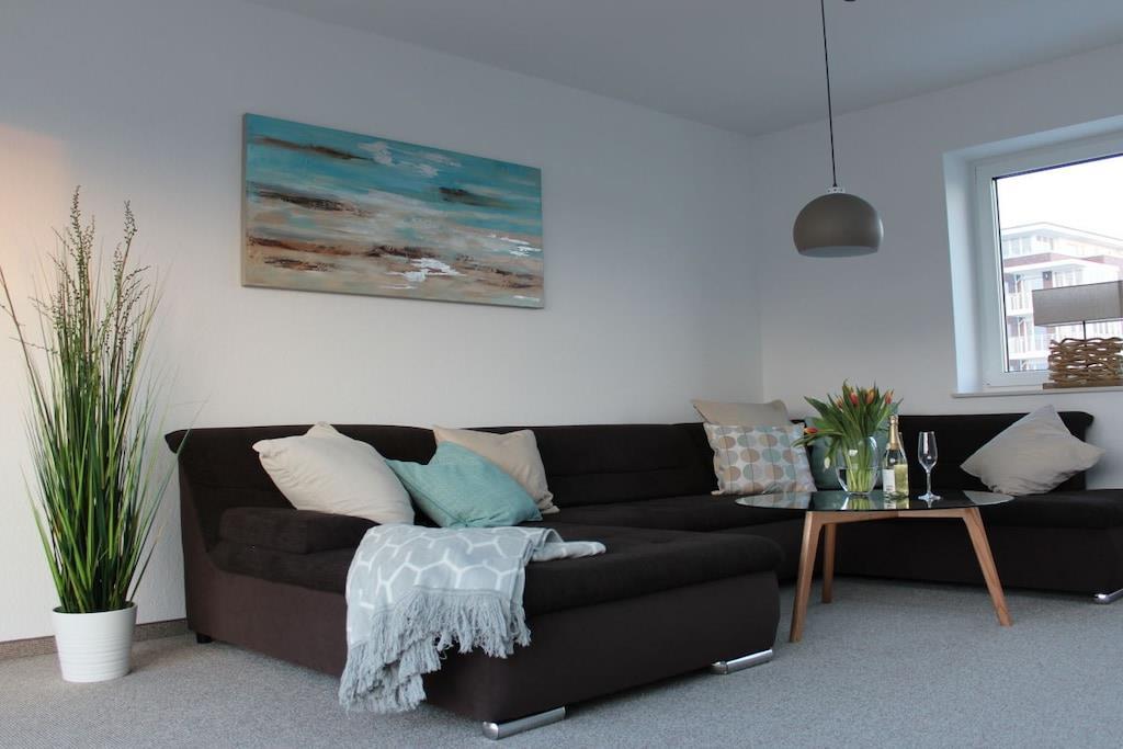 Centralt beliggende ferielejlighed i havnen i Cuxhaven. Lejligheden er i tre etager. Stueetagen har et rummeligt køkken med spisebord og seks stole, en stor terrasse med havemøbler, et gæstetoilet og et garderoberum. På første sal er der soveværelse, et stort badeværelse med bruser og sauna samt en balkon. Anden sal har to soveværelser, et stort badeværelse med bruser og badekar. Tredje sal, husets højdepunkt, er mezzaninen. Denne etage har stuen med en stor sofa, perfekt til afslapning, og en stor balkon med havemøbler.