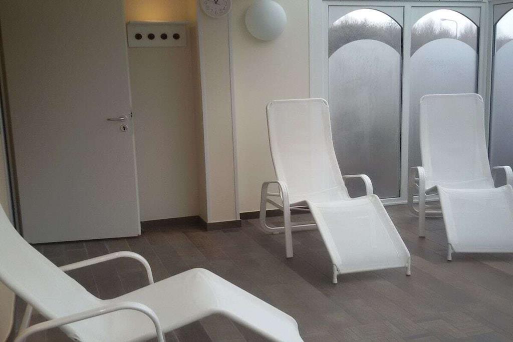 Stueetage: (loungerum(, sauna, Tyrkisk bad, hottub, swimmingpool)) Mellemetage: (drying room(tørretumbler, vaskemaskine, strygebræt, strygejern, tørreskab)) , , Køkken(, , tekøkken, brødrister, kaffemaskine, mikrobølgeovn, køleskab, fryser), soveværelse(, , enkeltsovesofa, dobbeltseng, Fjernsyn, Fjernsyn, radio), badeværelse(, toilet, bruser, håndvask), pulterkammer(tørreskab), garage, Internetadgang, tørretumbler, vaskemaskine, balkon(Græsplæne, havemøbler, sandkasse, Gyngestativ), varme, have(Grill center, Strand, Græsplæne, Fjernsyn), parkering, cykler til rådighed, strygejern, tørreskab, telefon
