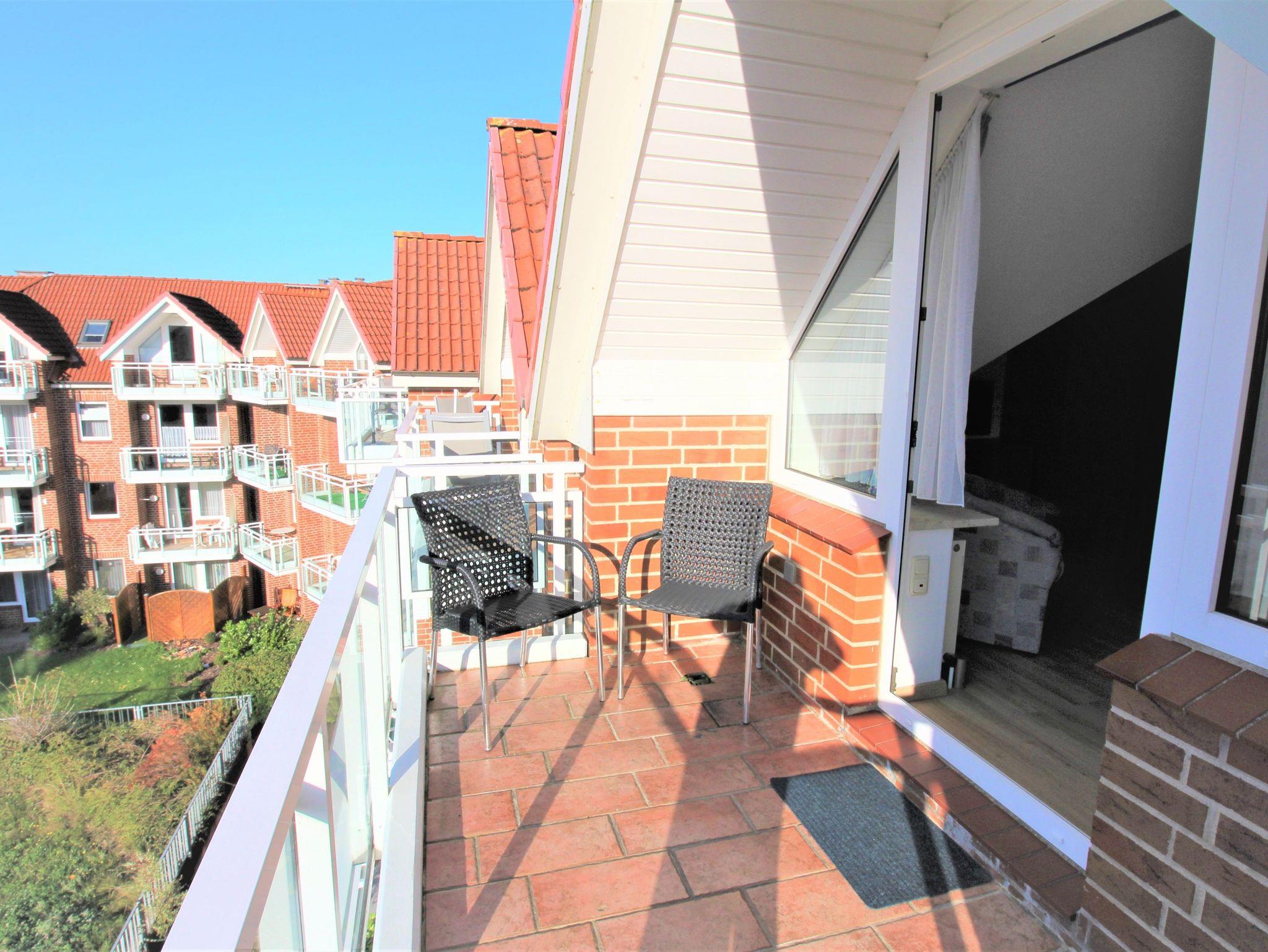 Sie wohnen in einem 2-Zimmer-Appartement für bis zu 4 Personen auf 48 m² im Dachgeschoss. Ein Schlafzimmer mit Doppelbett, Wohn-/Schlafraum mit bequemer Doppelbettcouch, separater Essplatz, voll ausgestatteter Küchenbereich mit Geschirrspüler, Dusche/WC, zwei Balkone, SAT-TV.