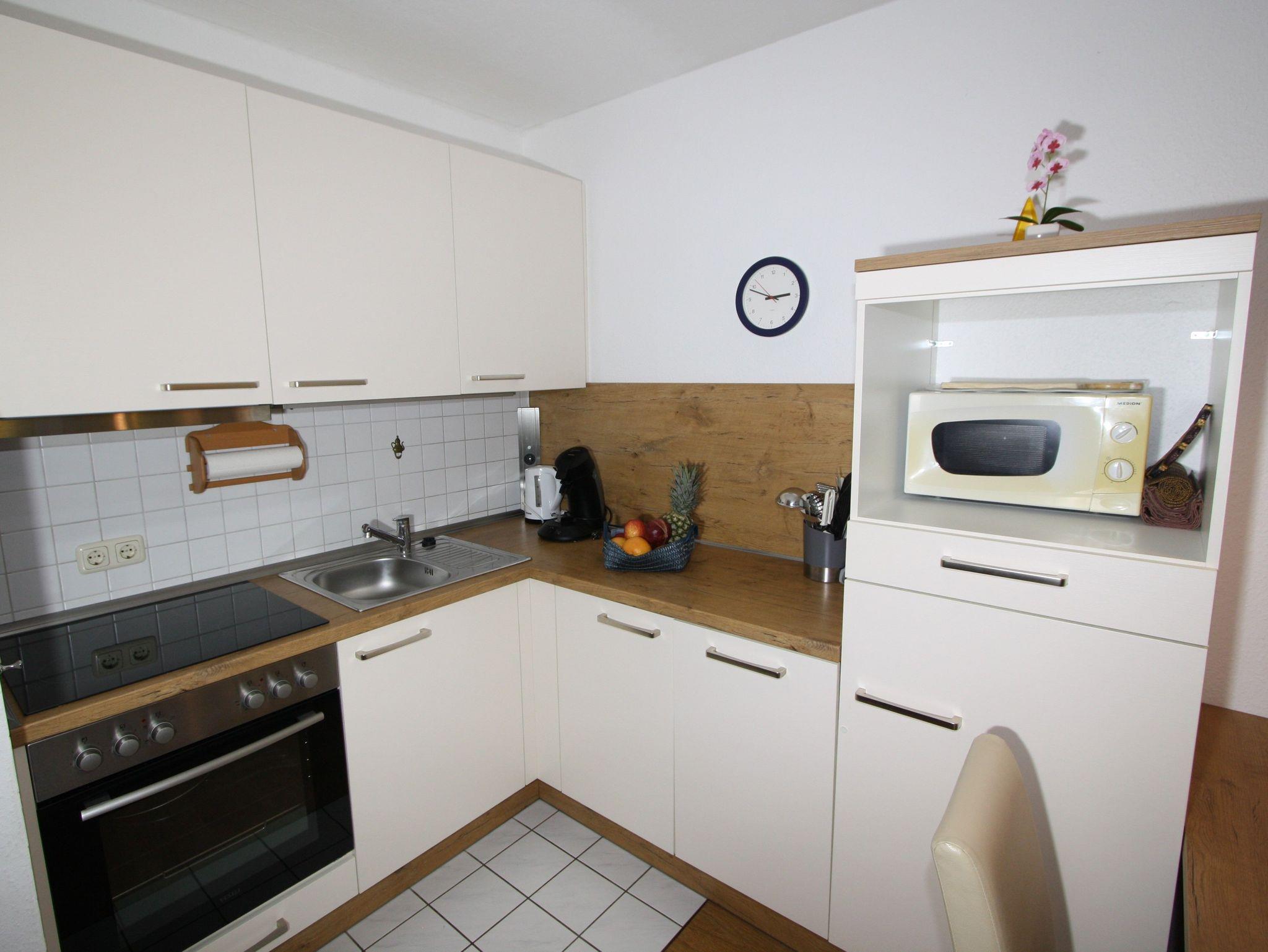 Sie wohnen im 1. OG in einer ca. 42 m² großen 2-Zimmer-Ferienwohnung mit einem Wohn-/Schlafraum und einem separaten Schlafzimmer mit zwei getrennten Betten. In der modernen Küche steht eine Senseo-Kaffeepadmaschine bereit. Für ein gemütliches Beisammensein oder lange Winterabende liegen Gesellschaftsspiele und DVDs für Sie bereit.