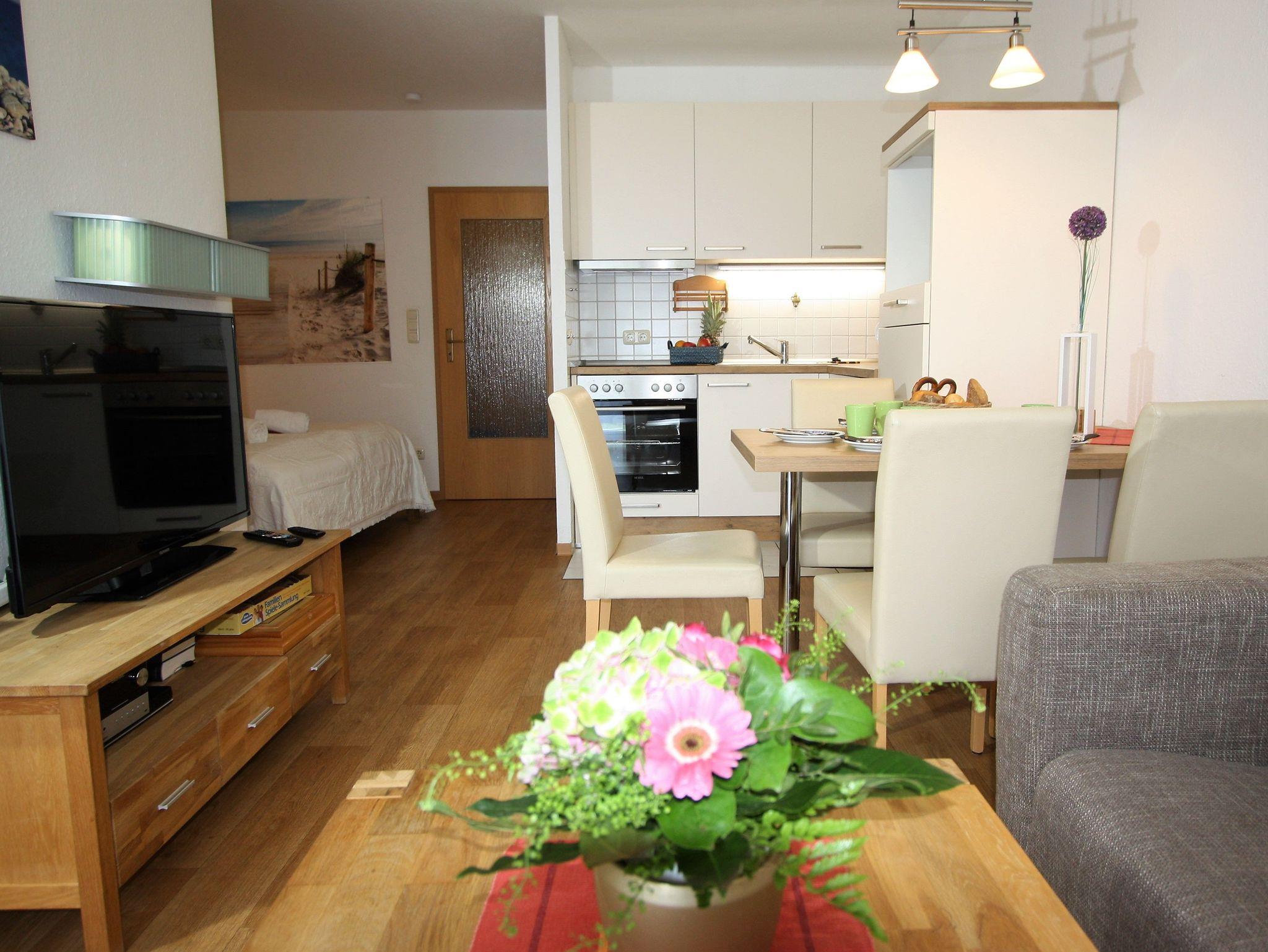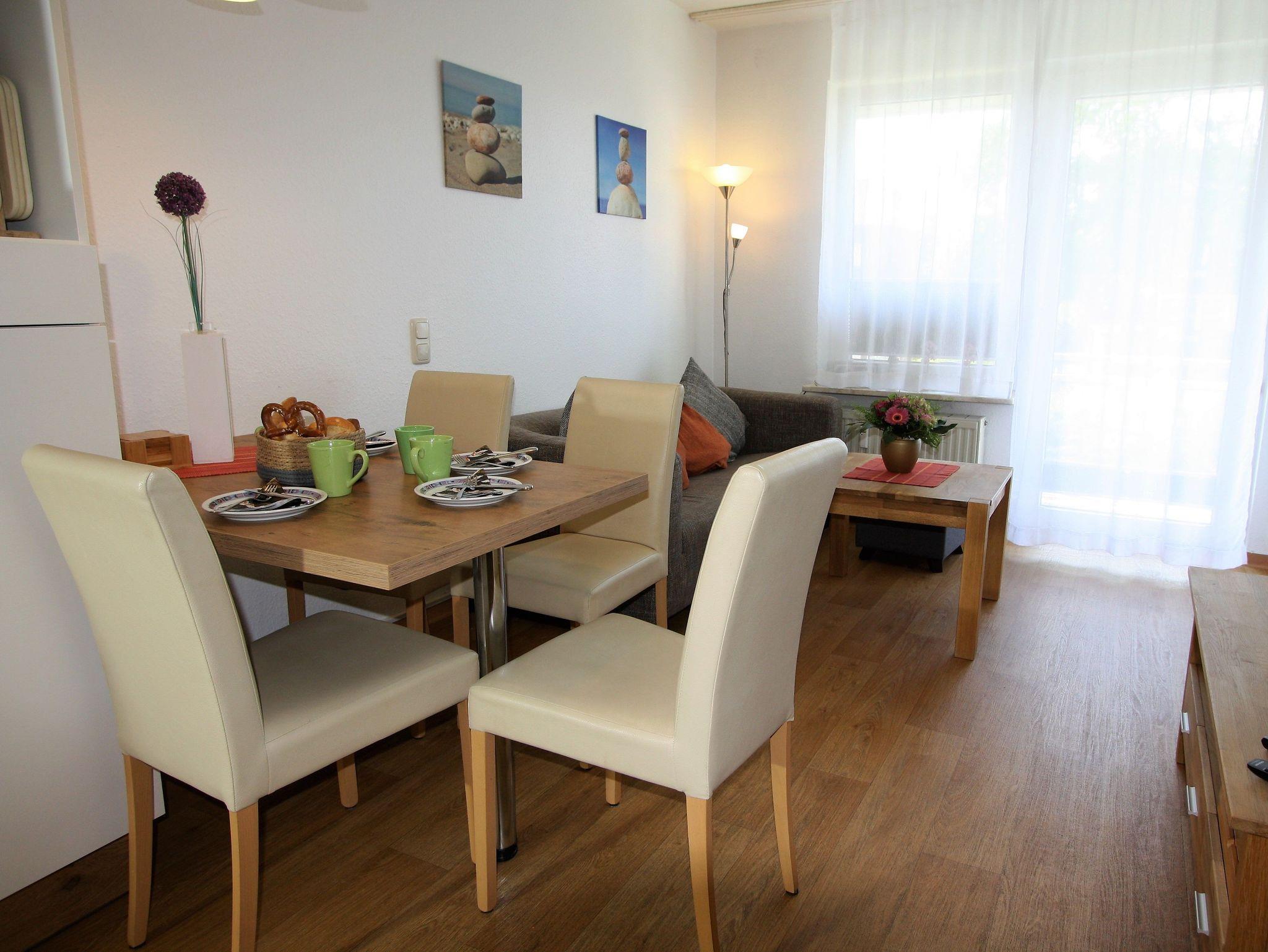 2-Zimmer-Appartement für bis zu 4 Personen auf ca.42 m². Schlafzimmer mit Doppelbett oder zwei Einzelbetten, Wohn-Schlafraum mit Doppelbettcouch, TV, separatem Essplatz, voll ausgestattetem Küchenbereich, Balkon oder Terrasse, Bad mit Dusche/WC. teilweise WLAN und PKW-Stellplatz vorhanden.
