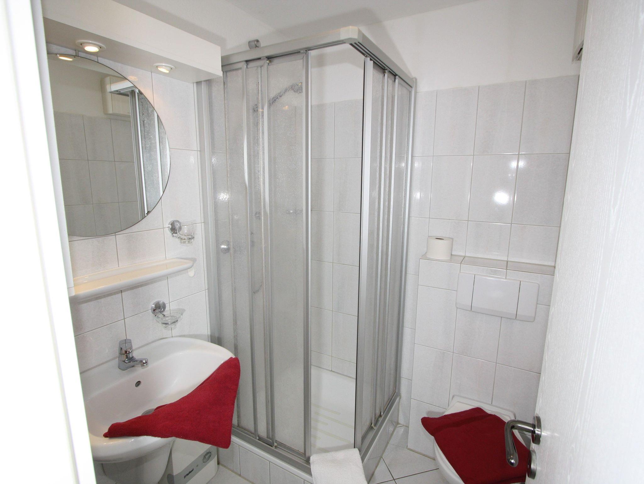 Im Souterrain befindet sich ein Schlafraum mit Doppelbett und zusätzlicher Dusche mit WC. Ein nummerierter PKW-Außenstellplatz befindet sich gegenüber des Haupteinganges.