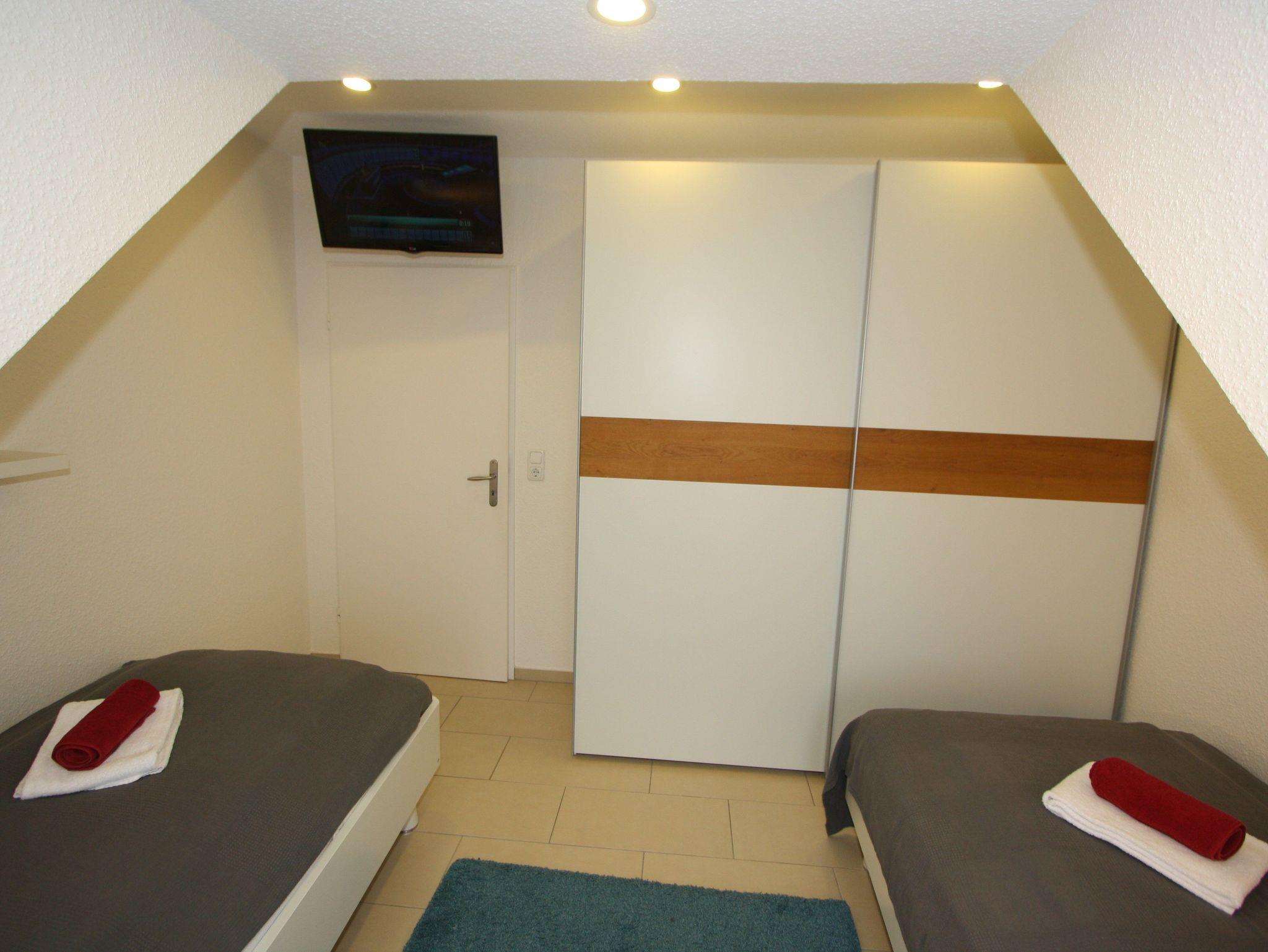 Sie verfügt über zwei separate Schlafzimmer. Ein Schlafzimmer mit zwei getrennt stehenden Einzelbetten und eigenem Flachbild-TV, sowie ein Schlafzimmer mit Doppelbett im gemütlichen Dachgeschoss.