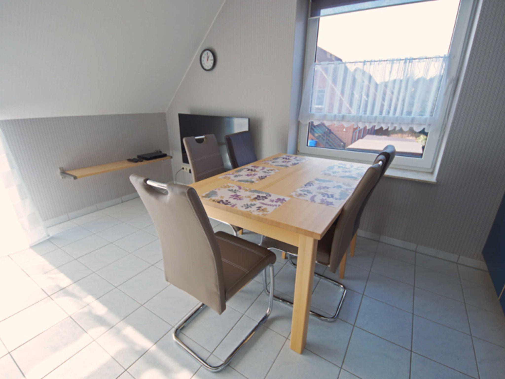 Die Ferienwohnung befindet sind sich in einer kleinen gepflegten Wohnanlage im Obergeschoss mit Balkon zur Gartenseite. Die Wohnung bietet Platz für 2 - 5 Personen. Zu der Wohnung gehört ein eigener abschließbarer Schuppen, wo Sie Ihre Fahrräder und andere Gerätschaften unterbringen können.