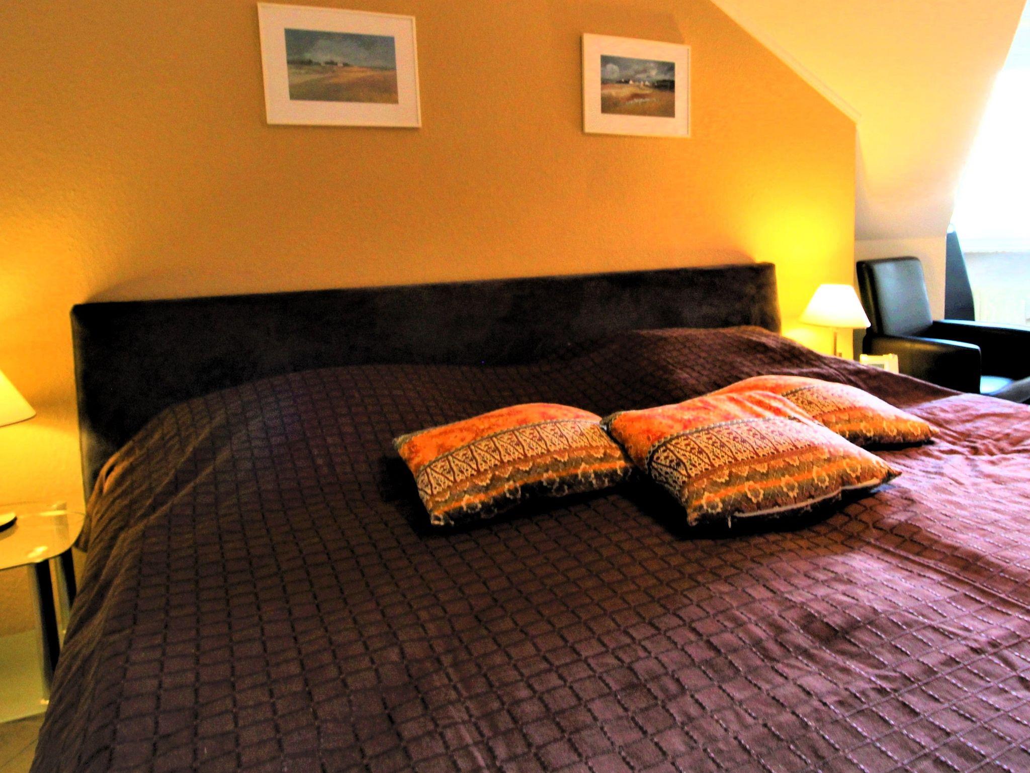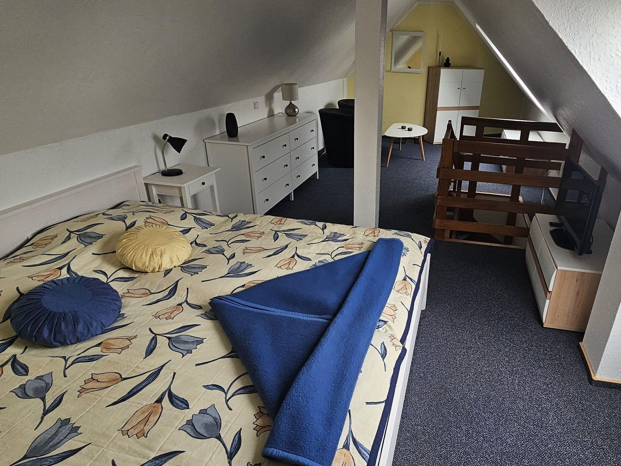 Sie wohnen in einer exklusiven, großzügigen Ferienwohnung mit ca. 70 m² auf zwei Etagen. Schlafzimmer Nr. 1 mit Boxspringbett (200 cm x 200 cm), geräumigem Kleiderschrank und passender Kommode sowie mit einem großen Fernseher. Zum Küchenbereich gehören ein Herd mit Ceranfeld, Backofen, eine separate Mikrowelle, Kühlschrank mit Gefrierfach, Spülmaschine, Filter- und Senseokaffeemaschine, Wasserkocher und Toaster . Ess- und Kochgeschirr sind in ausreichender Zahl vorhanden. Der lichtdurchflutete gemütliche Wohn- und Essraum ist geprägt von einer behaglichen Atmosphäre. Er ist geschmackvoll eingerichtet (Ledergarnitur im Notfall als Bett nutzbar) und verfügt über einen Fernseher, Blu-ray-Player sowie eine DAB + Radio mit Bluetooth. Das WLAN ist kostenlos. Für kleine Wertsachen ist ein Tresor vorhanden.