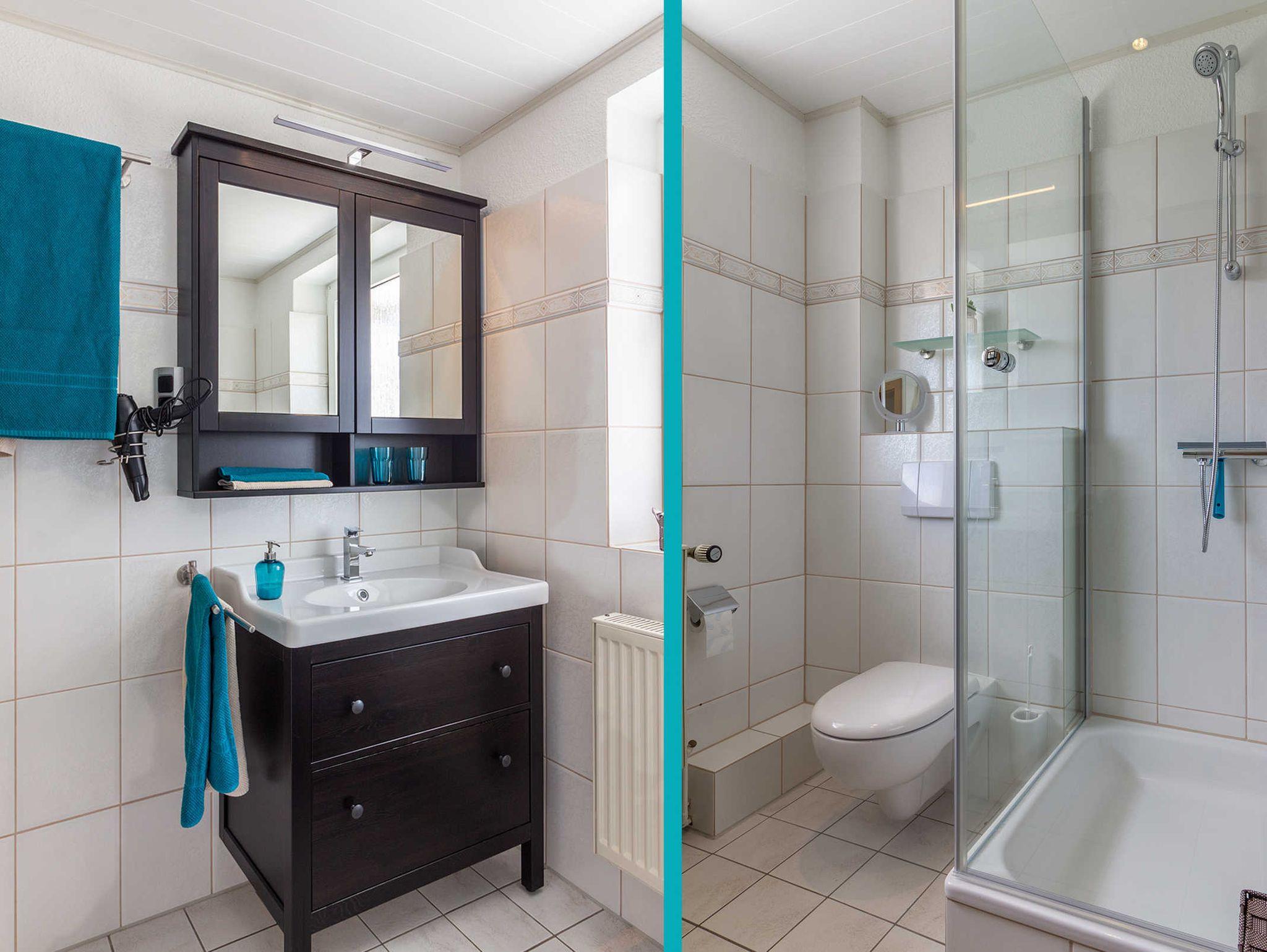 Es erwartet Sie ein modernes Bad mit Dusche.