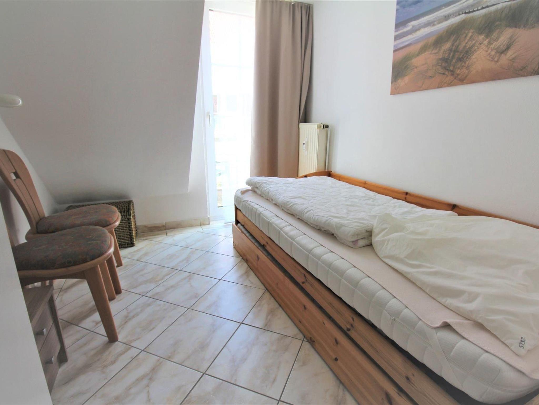 2-Zimmer-Appartement für bis zu 4 Personen auf ca. 40-45 m². Schlafzimmer mit Balkon und Doppelbett, Wohn-Schlafraum mit Balkon und bequemer Doppelbettcouch, TV, separatem Essplatz im Erker und voll ausgestattetem Küchenbereich. Bad mit Dusche/WC. WLAN und PKW-Stellplatz vorhanden.
