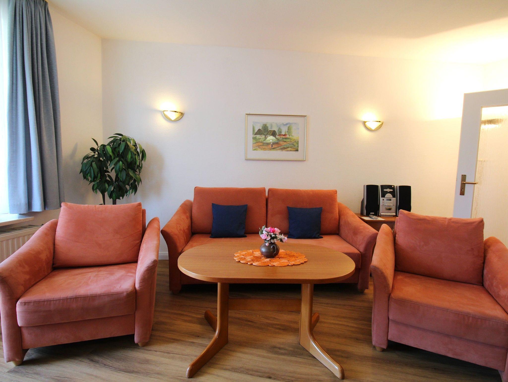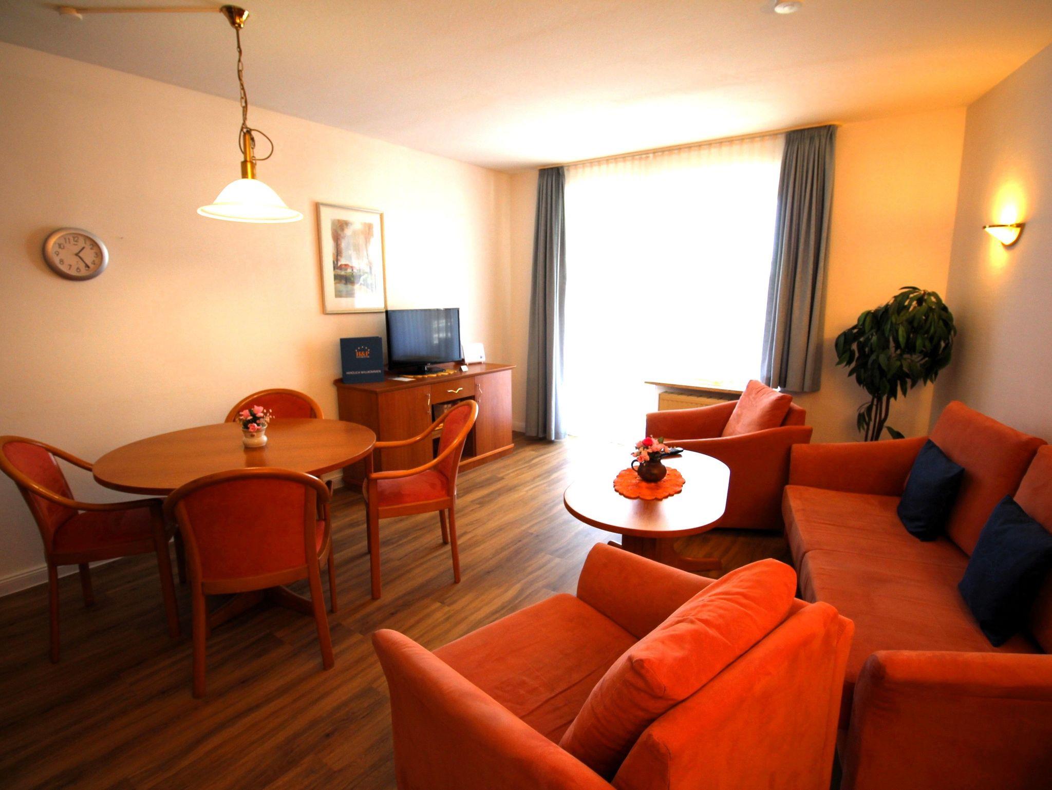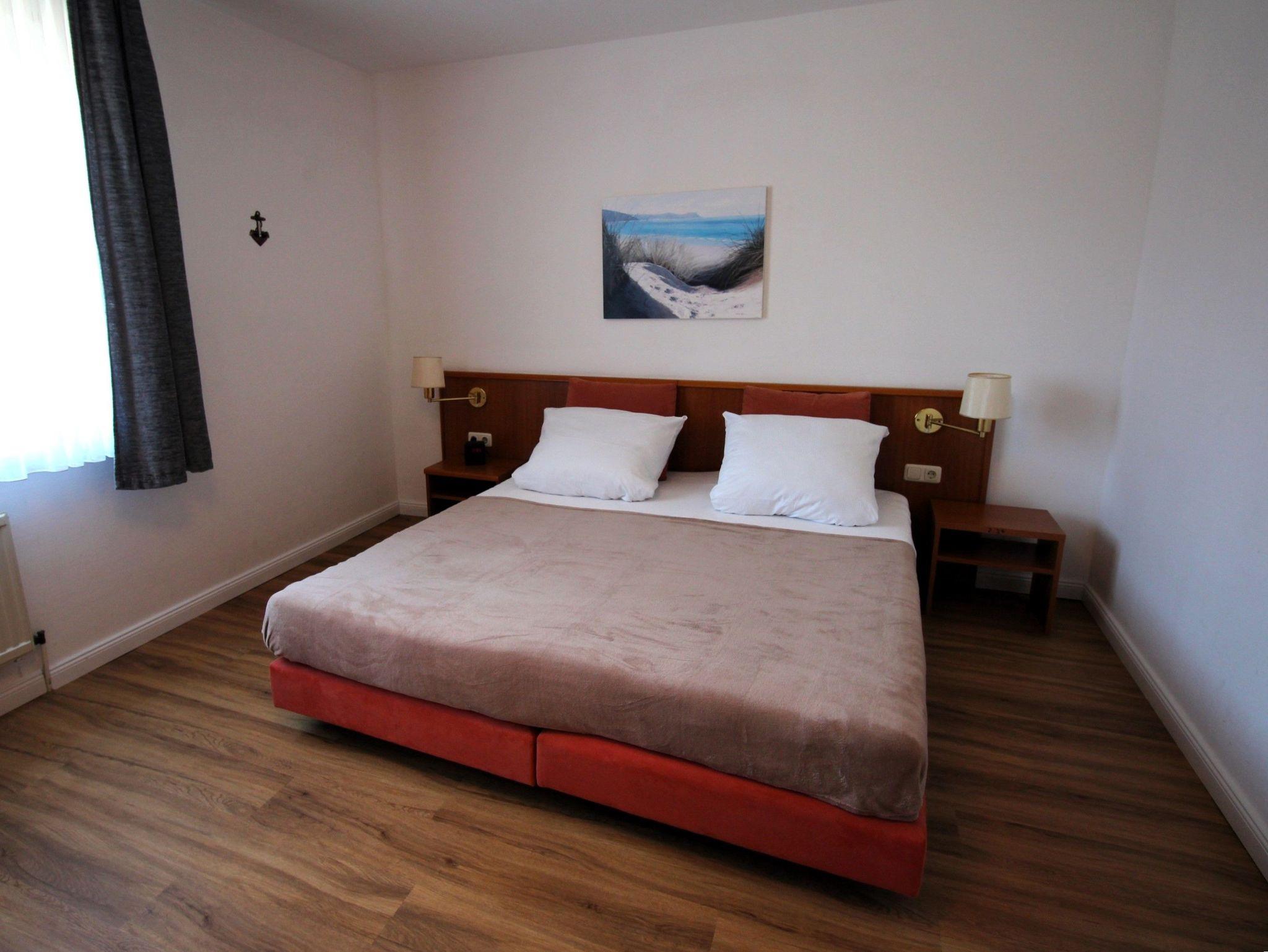 Sie wohnen in einem 2-Zimmer-Appartement für bis zu 4 Personen auf 51 m² Wohnfläche im 1. Obergeschoss. Ein Schlafzimmer mit Doppelbett, Wohn-/Schlafraum mit bequemer Doppelbettcouch, separater Essplatz, voll ausgestatteter Küchenbereich mit Geschirrspüler und Backofen, Dusche/WC mit Föhn, Balkon, SAT-TV, HiFi-Anlage mit CD-Wechsler und Telefon. PKW-Einstellplatz in einer Einzelgarage mit einer Einfahrtshöhe von 2,00 m.