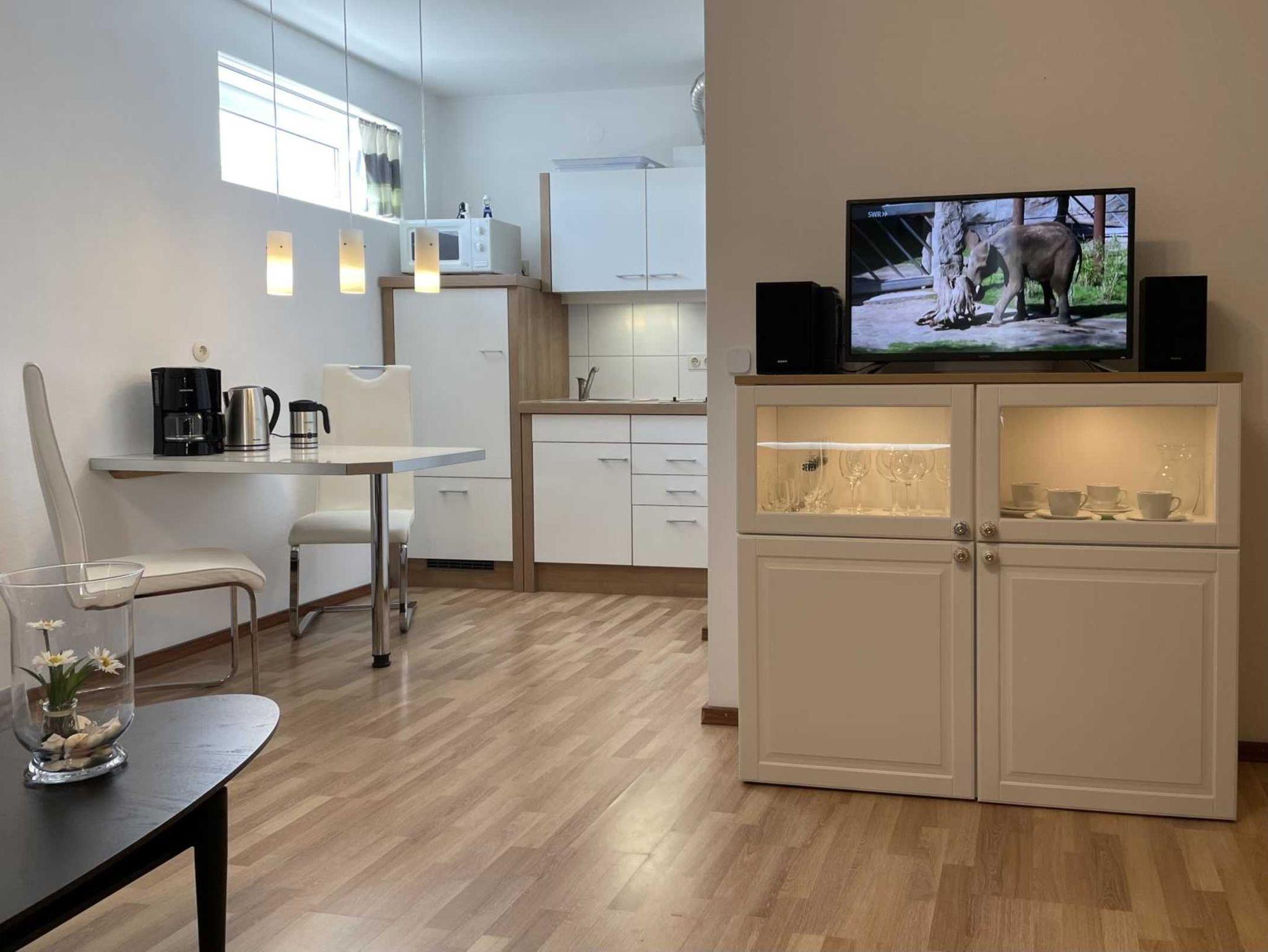 Aufteilung bei ca. 35 m² Wohn-/Nutzfläche: Eingangsbereich, heller Wohn-/Schlafraum mit Schrank-Doppelbett, gemütliche Couch und Sesseln. Essplatz und voll ausgestatteter Küchenbereich mit 2-Platten-Ceranfeld (ohne Backofen), Mikrowelle, Kühlschrank (ohen Gefrierfach), Kaffeemaschine, Wasserkocher, Milchaufschäumer, Toaster und Eierkocher. Modernes Duschbad mit WC. Balkon mit Sitzgarnitur und Panoramaseesicht. Die Bilder sprechen für sich.