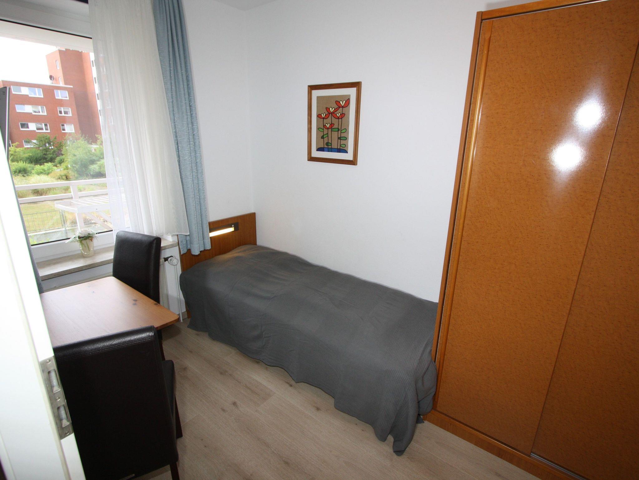 Zusätzlich gib es ein seperates Schlafzimmer (Kinderzimmer) mit zwei einzelnen Betten sowie einem SAT TV