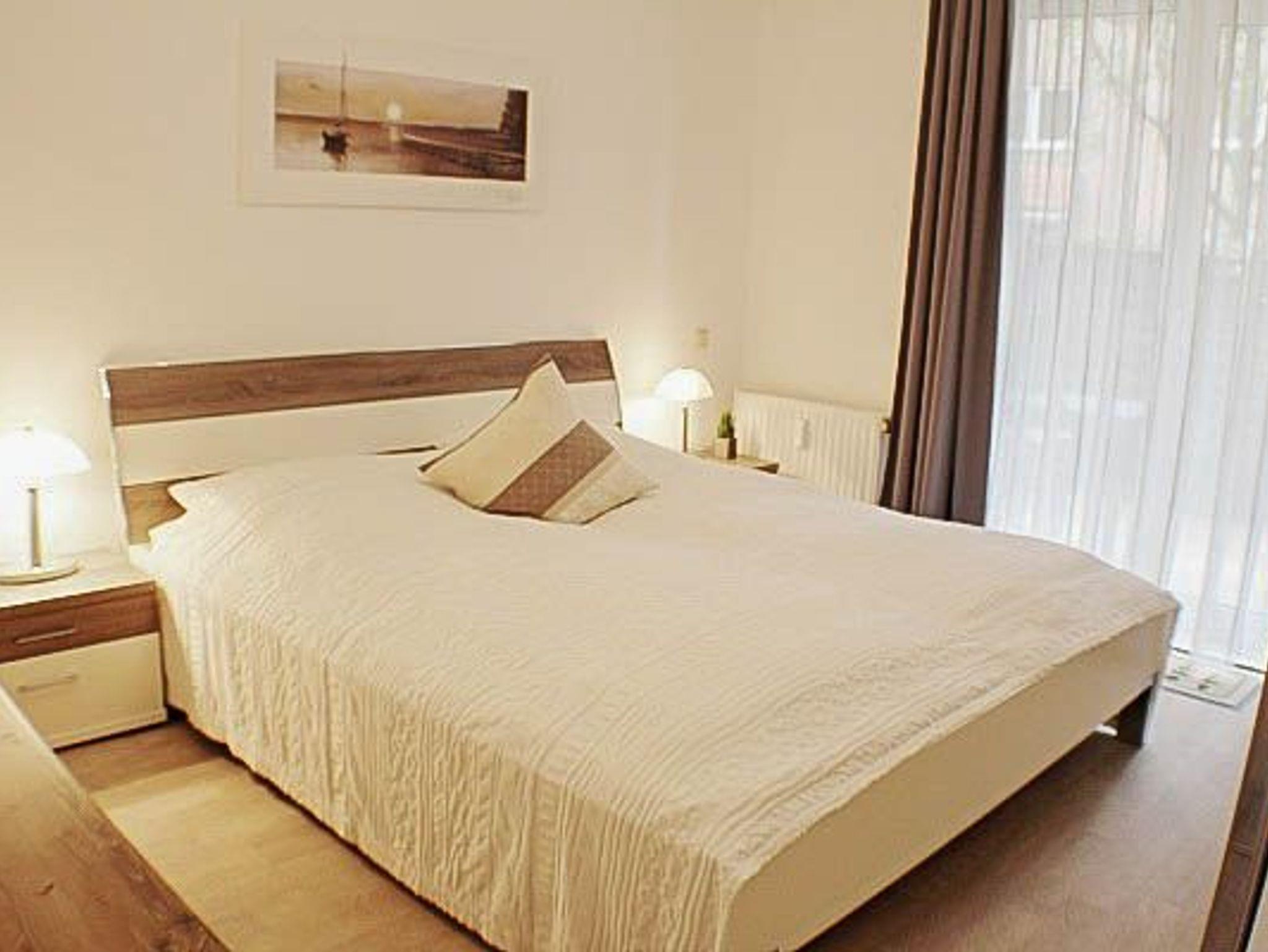 2-Zimmer-Appartement für bis zu 4 Personen auf ca. 46 m². Schlafzimmer mit Doppelbett, Wohn-Schlafraum mit Doppelbettcouch, TV, separatem Essplatz, voll ausgestattetem Küchenbereich, Balkon oder Terrasse, Bad mit Dusche/WC. WLAN und PKW-Stellplatz vorhanden.