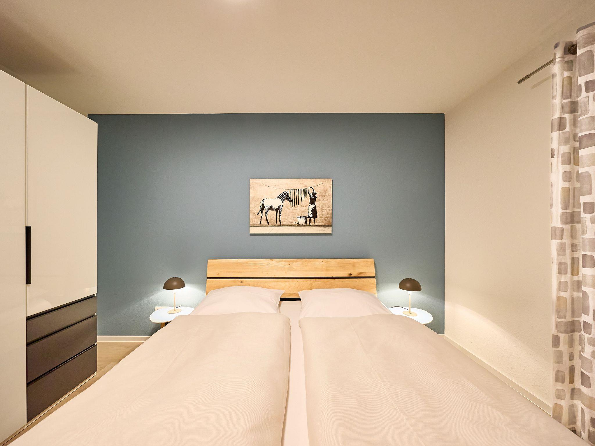 Im Wohnzimmer lädt eine bequeme Eck-Couch zu relaxen ein und kann in ein 1,40 m breites Doppelbett mit Lattenrost und Matratze verwandelt werden. Ein 55 Bildschirm komplettiert den Wohlfühl-Charakter. Das gemütliche Schlafzimmer verfügt über ein 1,80m Doppelbett und einen 42 Bildschirm. Das Designerbad lässt mit Regenschauer-Dusche und Handtuch-Heizkörper keine Wünsche offen.