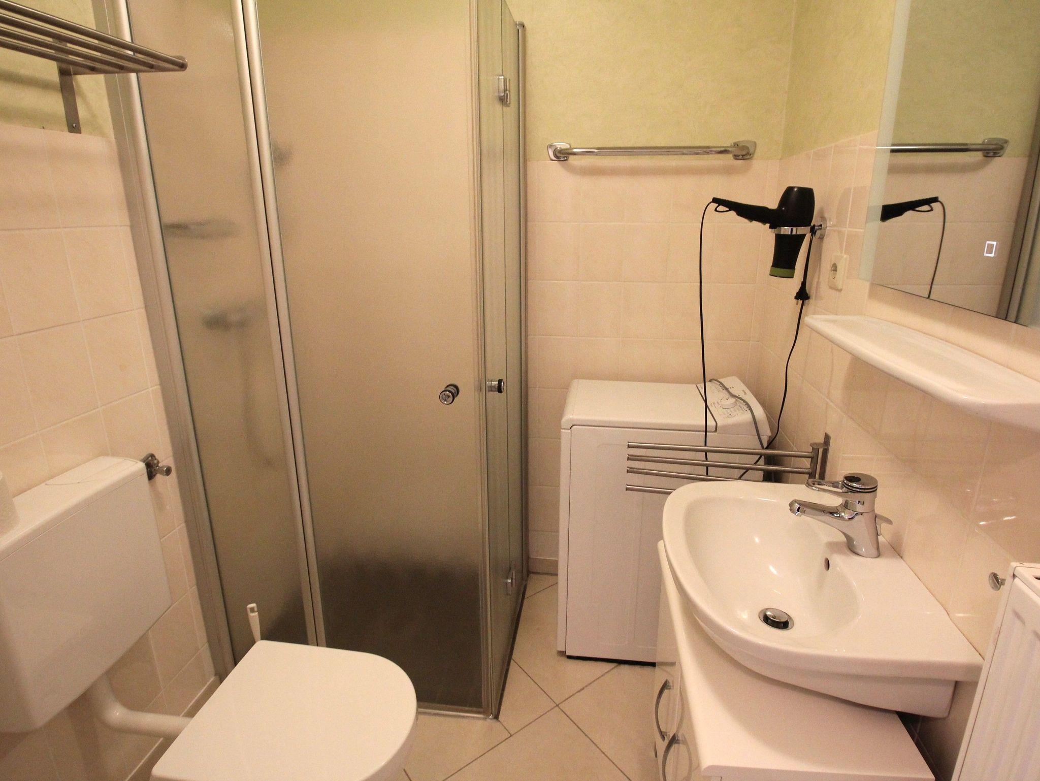 Sie wohnen in einem 2-Zimmer-Appartement für bis zu 4 Personen auf ca. 45 m² im EG. Die Ferienwohnung verfügt über ein Schlafzimmer mit Etagenbett, ein Wohn-/Schlafraum mit Doppelbett, separaten Essplatz und voll ausgestatteter Küchenbereich mit Geschirrspüler, Waschmaschine, Dusche/WC, Süd-West-Terrasse, Kabel-LCD-TV, PKW-Stellplatz vor dem Haus.