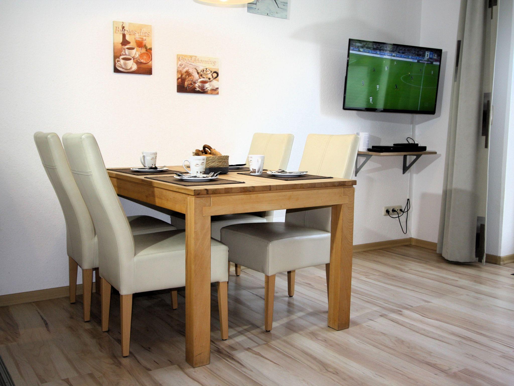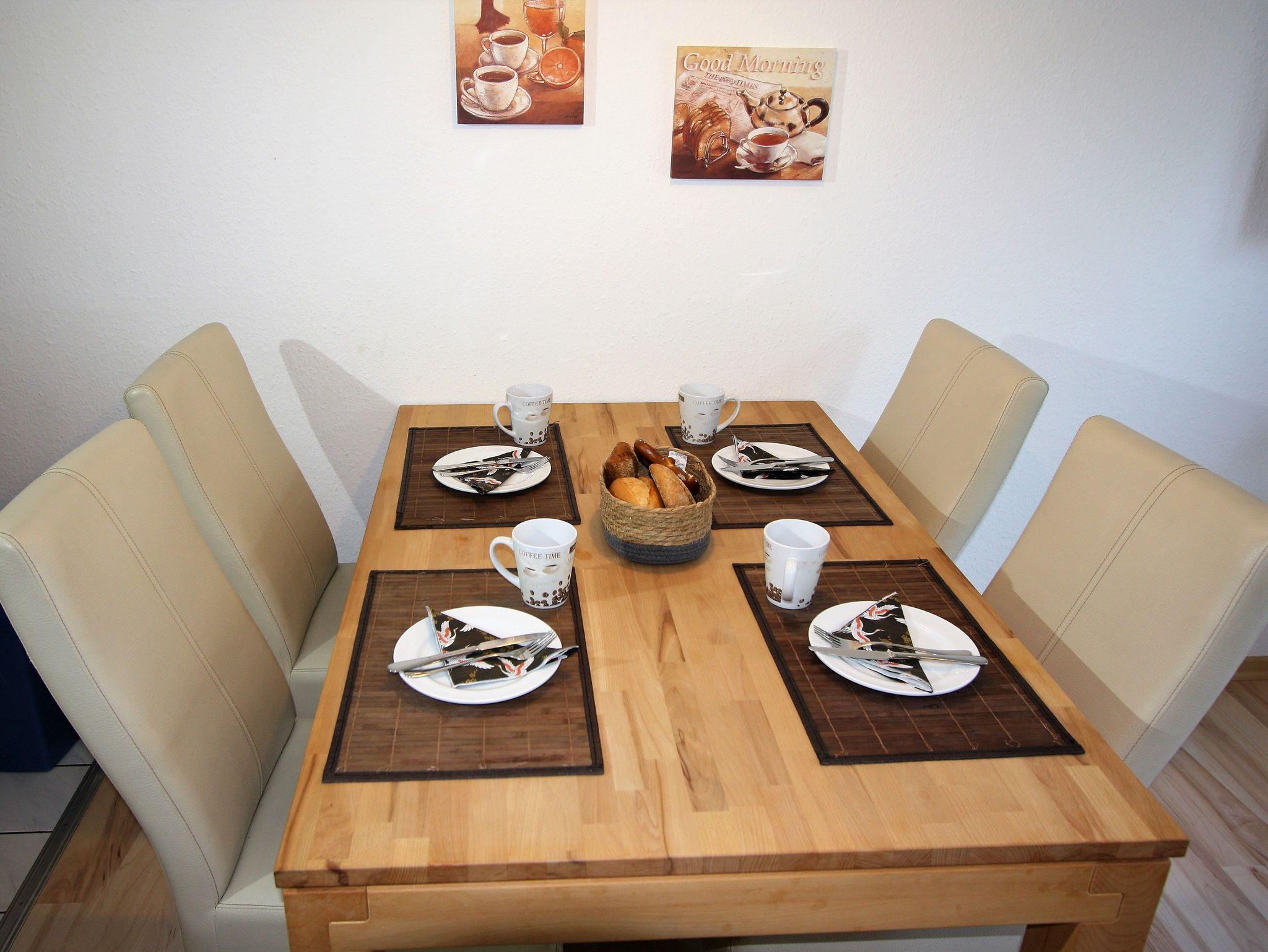 2-Zimmer-Appartement für bis zu 4 Personen auf ca.45 m². Schlafzimmer mit Doppelbett, Wohn-/Schlafraum mit Doppelbettcouch, TV, separatem Essplatz, voll ausgestattetem Küchenbereich, Terrasse oder Balkon, Bad mit Dusche/WC. teilweise WLAN und PKW-Stellplatz vorhanden.