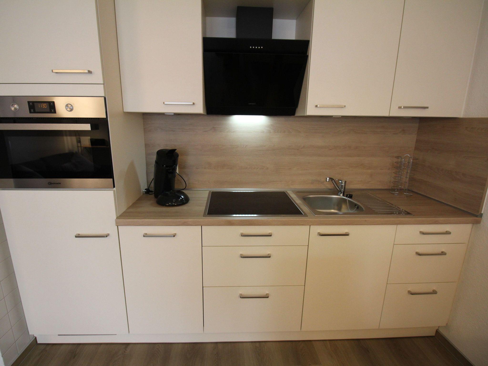 Dervoll ausgestattete Küchenbereich verfügt u.a. über Backofen mit Mikrowelle, Geschirrspüler, Senseo-Kaffeepadmaschine, usw. Das Bad ist mit Dusche und WC ausgestattet.