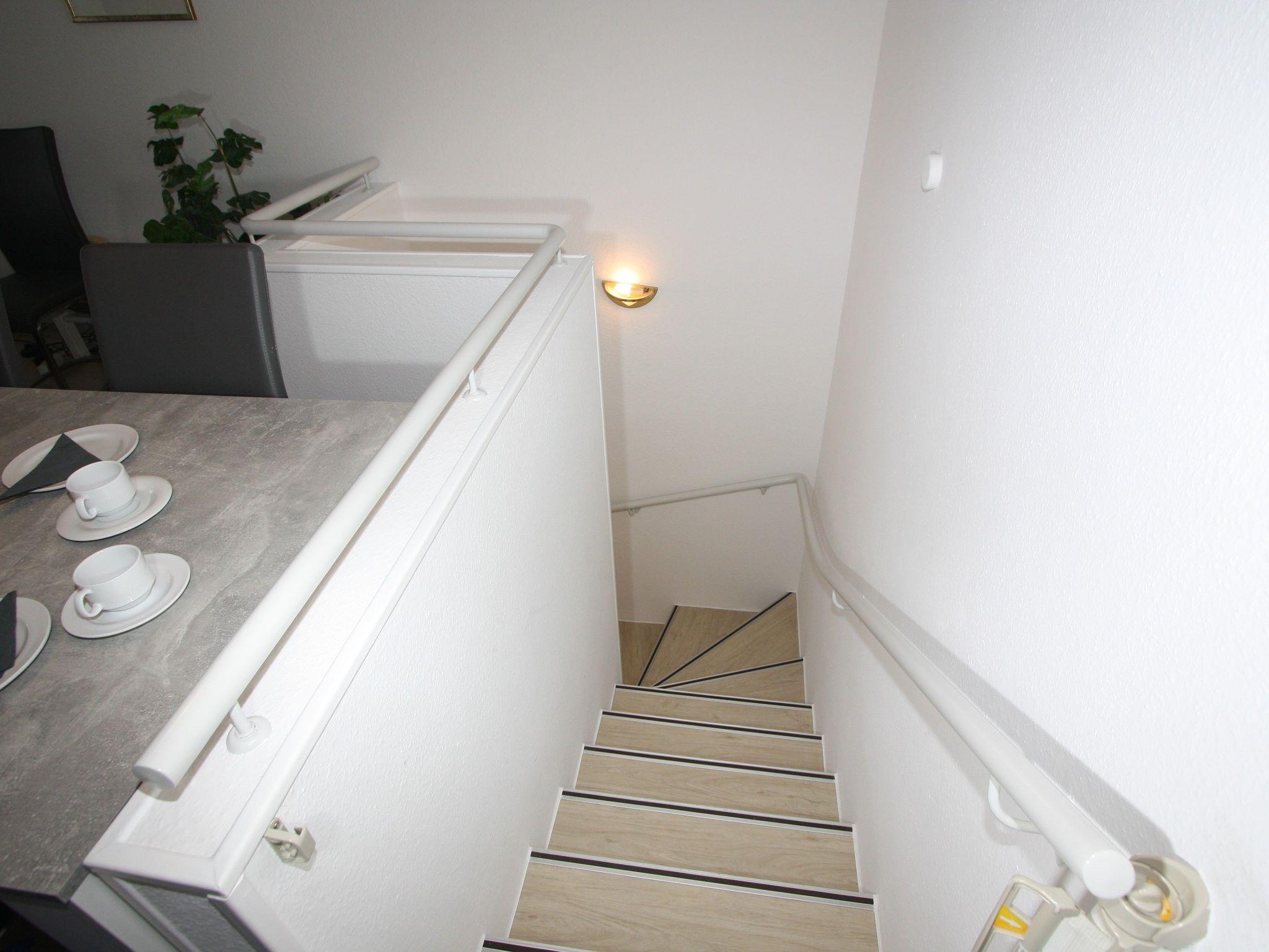 Die Wohnung ist kindergerecht ausgestattet mit Kinderhochstuhl, zusätzlichem Kinderreisebett und Kindersicherung vor der Treppe.