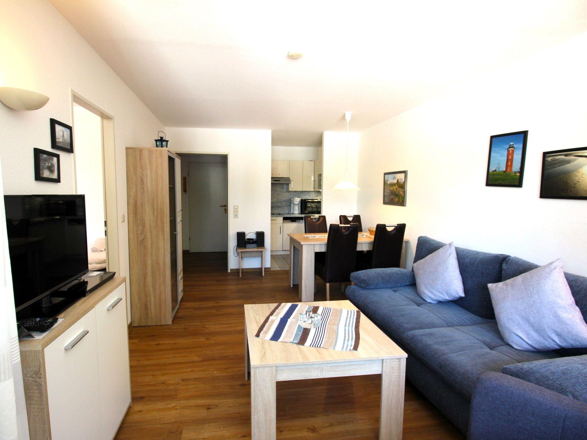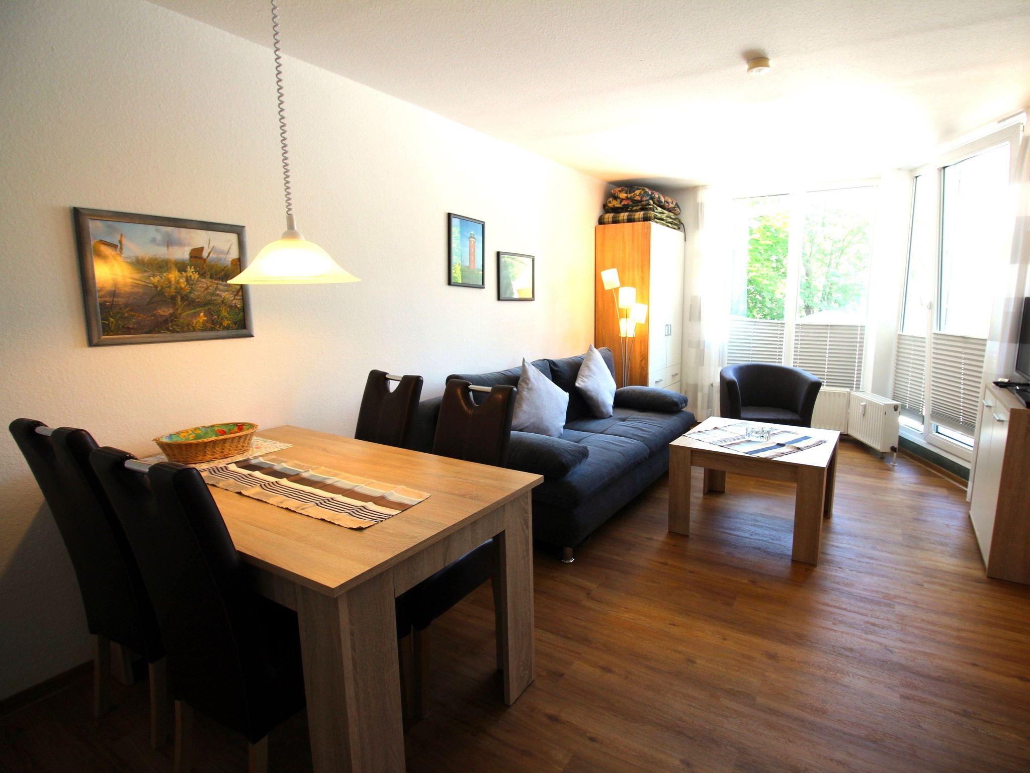 Sie wohnen in einem 2-Zimmer-Appartement für bis zu 4 Personen auf ca 40 m². Ein Schlafzimmer mit getrennten Betten, Wohn-/Schlafraum mit Doppelbettcouch, separater Essplatz, voll ausgestatteter Küchenbereich, bodengleiche Dusche/WC, Balkon, kostenfreies WLAN und SAT-TV.