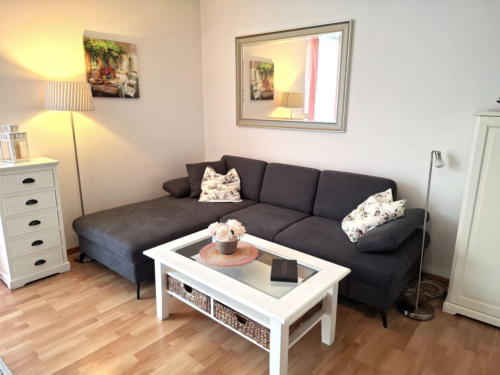 2-Zimmer-Appartement für bis zu 3 Personen auf ca. 46 m². Schlafzimmer mit Doppelbett, Wohn-Schlafraum mit Doppelbettcouch, TV, separatem Essplatz, voll ausgestattetem Küchenbereich, Balkon oder Terrasse, Bad mit Dusche/WC. WLAN und PKW-Stellplatz vorhanden.