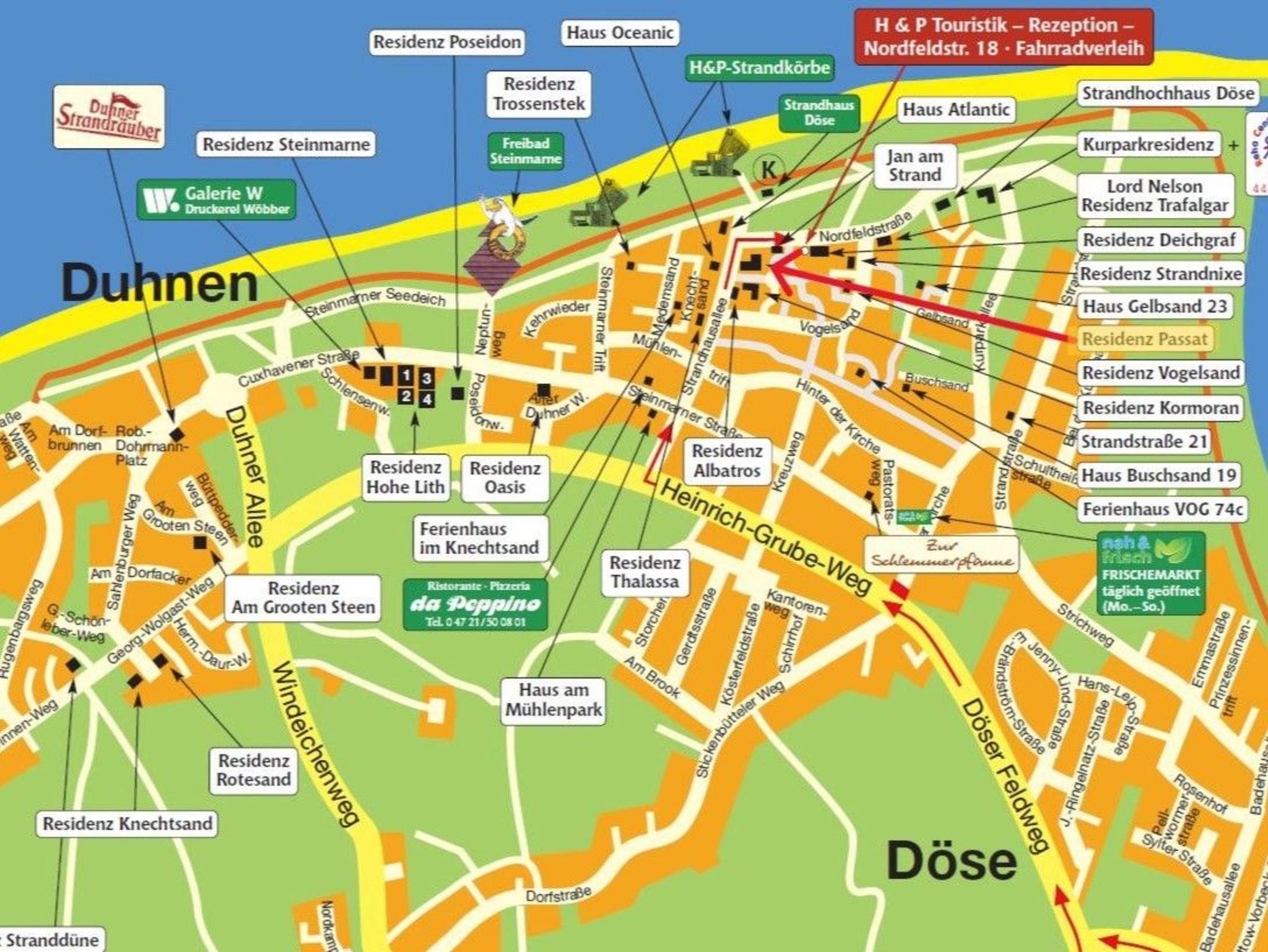 Unsere Residenz Passat ist eine schön gelegene Ferienwohnanlage in Cuxhaven-Döse. Sie gehen nur rund 150 m zum Strand und zum Strandhaus. In der Anlage finden Sie 52 Ferienwohnungen für 1 - 6 Personen.