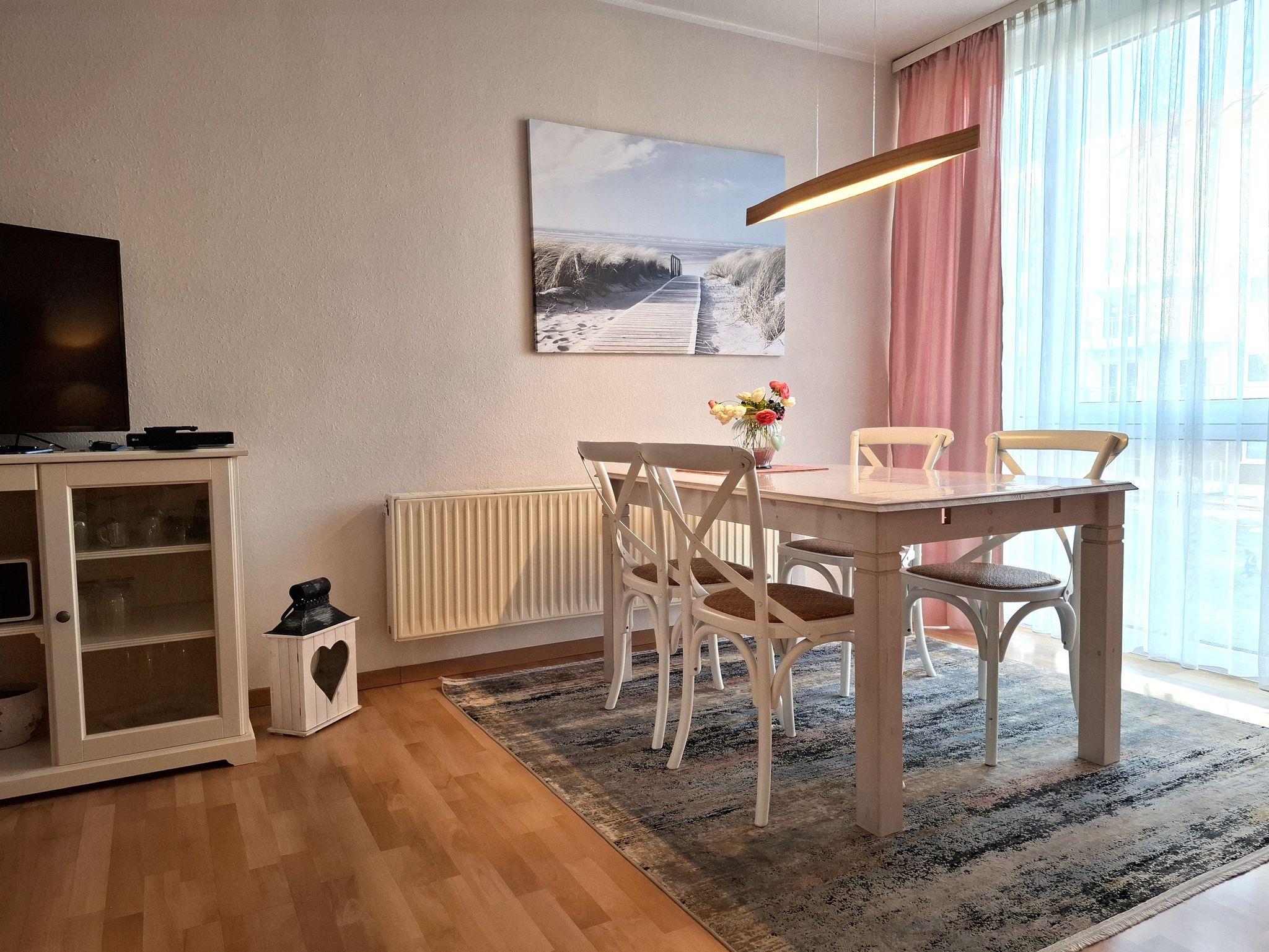 Ihre 2-Zimmer-Ferienwohnung befindet sich in der 1. Etage der gepflegten Residenz Passat. Sie verfügt über ein Schlafzimmer, Wohnraum mit Küchenzeile, Tageslicht Duschbad, Balkon und Aufzug.