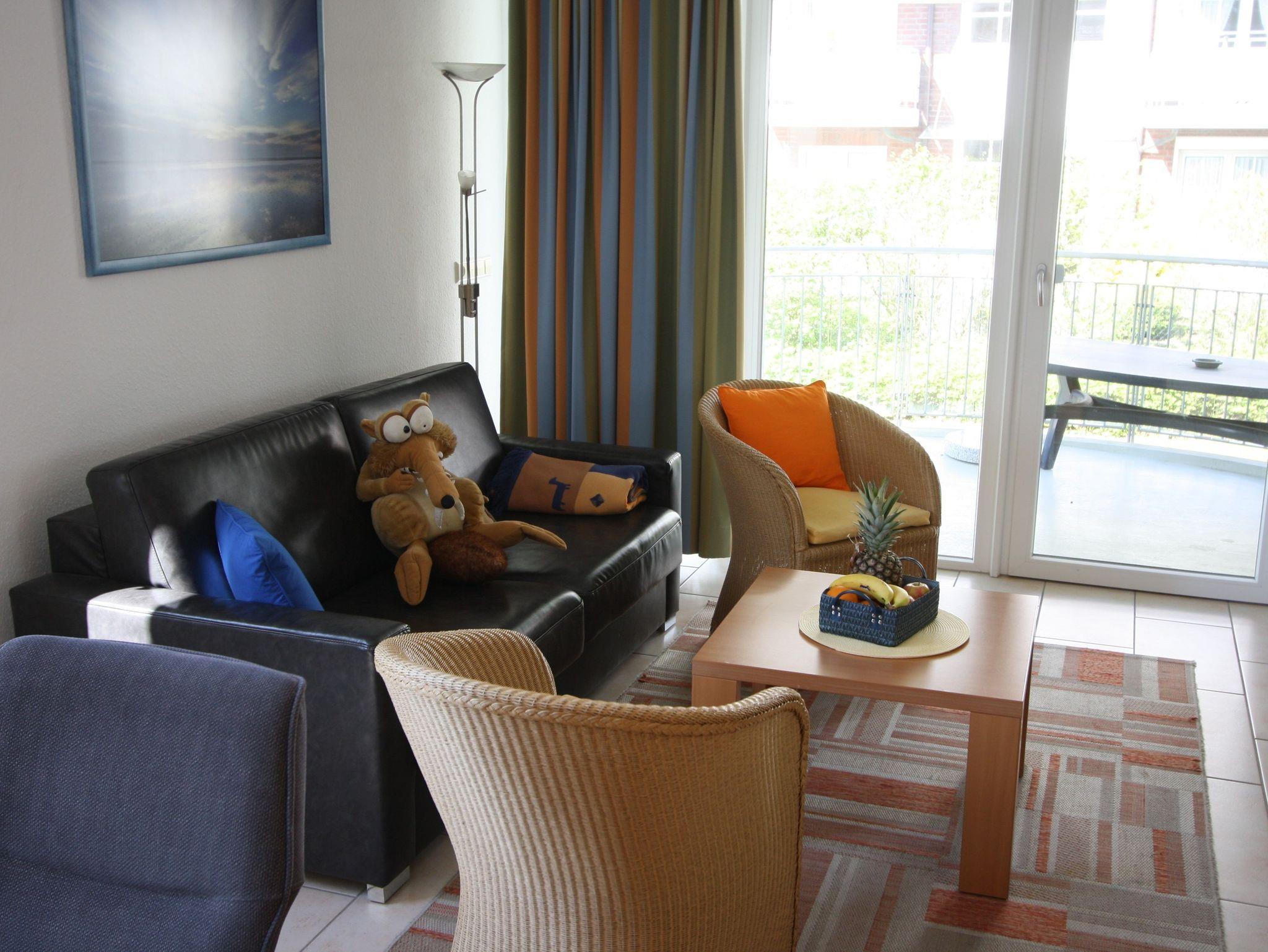 Sie wohnen in einem 3-Zimmer-Appartement für bis zu 6 Personen auf ca. 69 m² im Erdgeschoss. Zwei Schlafzimmer mit Doppelbett mit SAT-TV, großer heller Wohn-/Schlafraum mit bequemer Doppelbettcouch, separater Essplatz, voll ausgestatteter Küchenbereich mit Geschirrspüler und Mikrowelle, Dusche/WC, großer möblierter Balkon, Abstellraum, SAT-TV (Flachbildschirm) und Mini-HiFi-Anlage mit DVD-Player.
